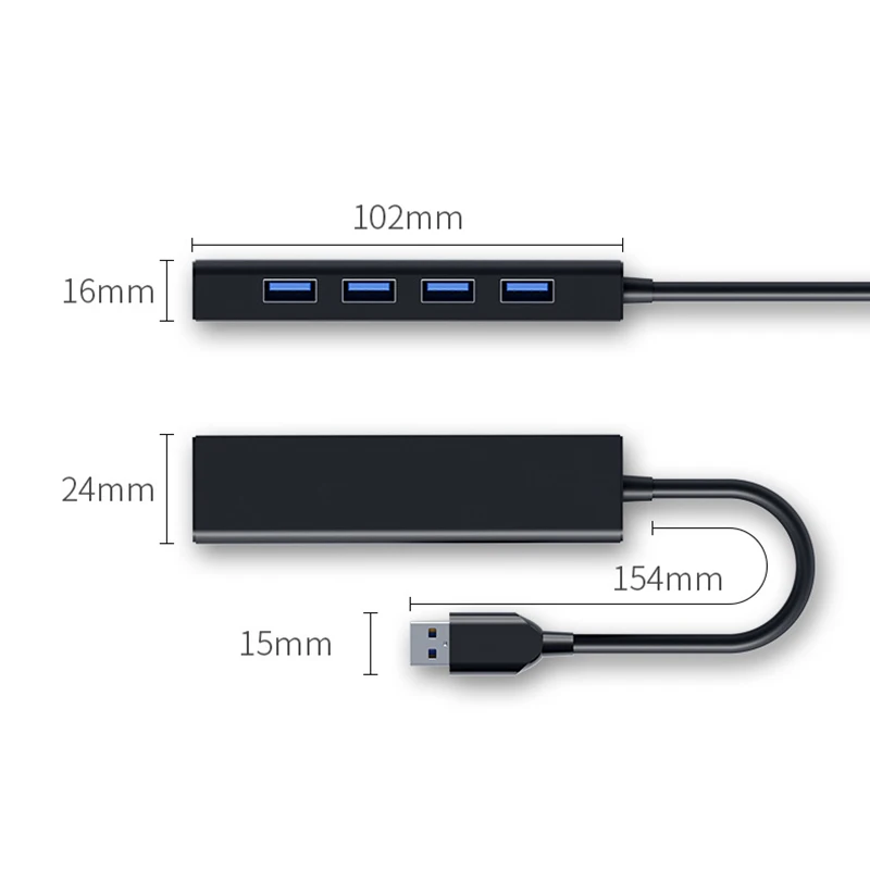 HUB USB 4 en 1 de alta velocidad, 4 puertos USB 3,0 Hub, Puerto USB portátil OTG Hub, adaptador Divisor de cable USB para accesorios de computadoraEspecificación
