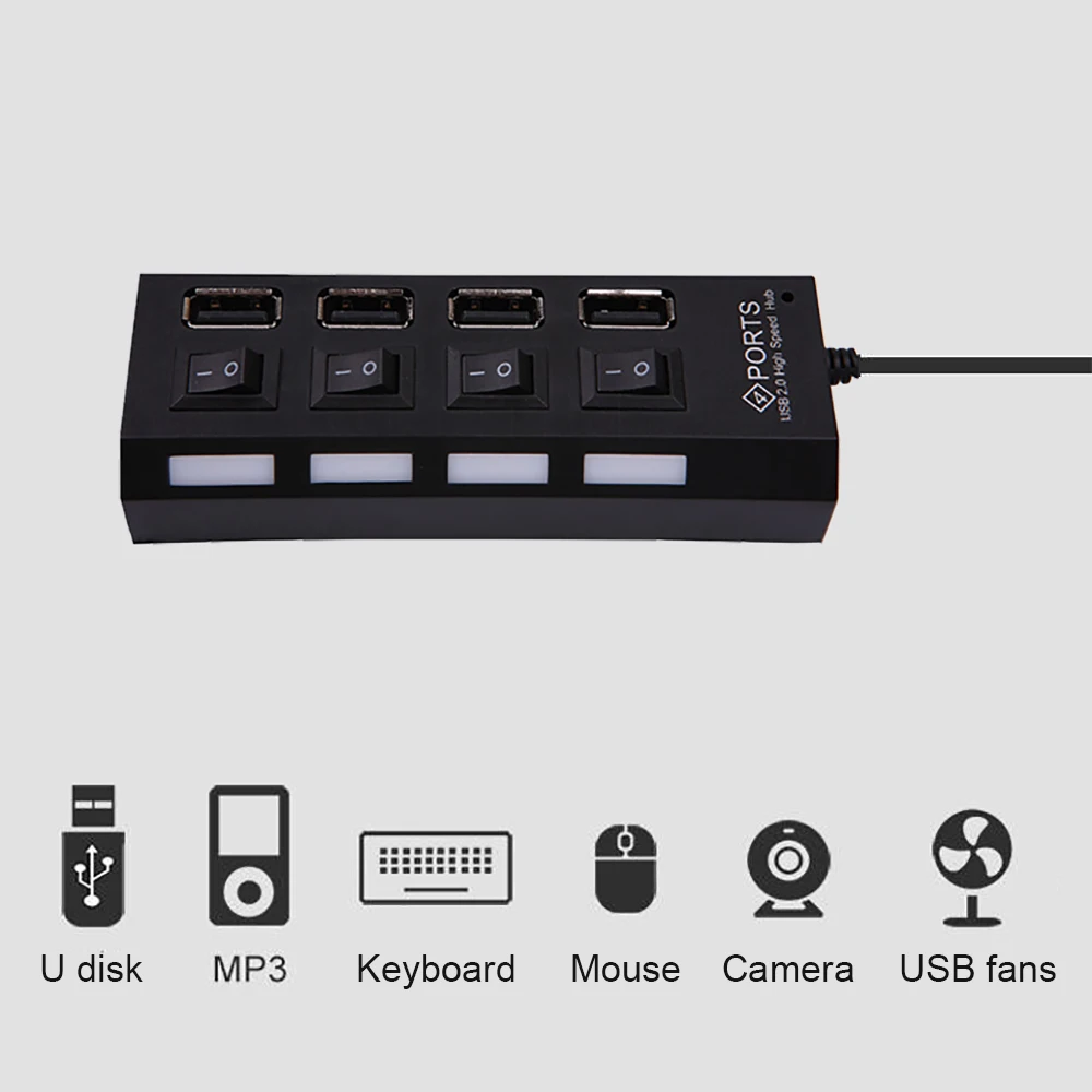 Comprar HUB USB 4 en 1, divisor USB 2,0, adaptador USB a USB 2,0, estación de acoplamiento USB de alta velocidad de 480Mbps con interruptor de encendido/apagado para PC y portátil