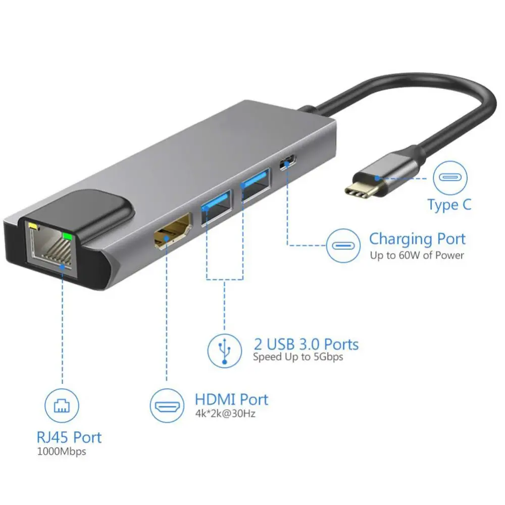 Comprar Hub Usb C 3 a HDMI, estación de carga PD, 5 puertos, RJ45 con PD, TF, SD, divisor 3 0 para Macbook /Air