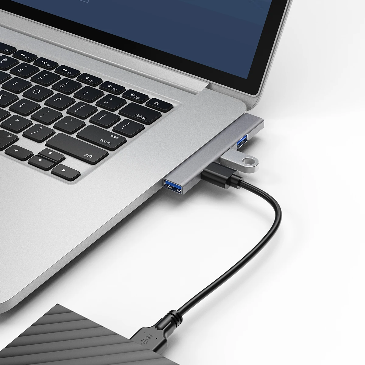 3- El concentrador USB tiene un cuerpo totalmente de aluminio y la resistente carcasa de metal evita que se rompa y es más duradera que el plástico.