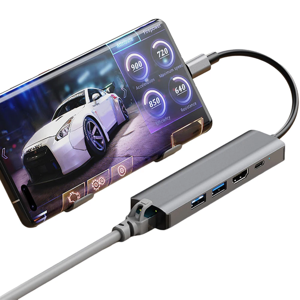 Característica:1.Expansión multifuncional 5 en 1:El concentrador USB C ofrece una gama robusta de puertos, incluidos 1 PD100W/USB-C, 1 4K/30Hz compatible con HDMI, 1 USB 3.0, 1 USB 2.0 y 1 puerto Ethernet.Este adaptador multipuerto le permite acceder a Internet rápido, conectar periféricos y completar sus tareas de manera eficiente.