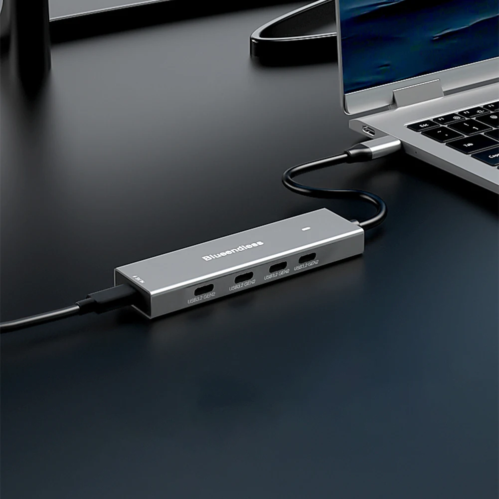 1.Transmisión de alta velocidad:Los cuatro puertos del concentrador USB C admiten una velocidad teórica de 10 Gbps, lo que garantiza una transferencia de datos rápida para todos sus dispositivos.