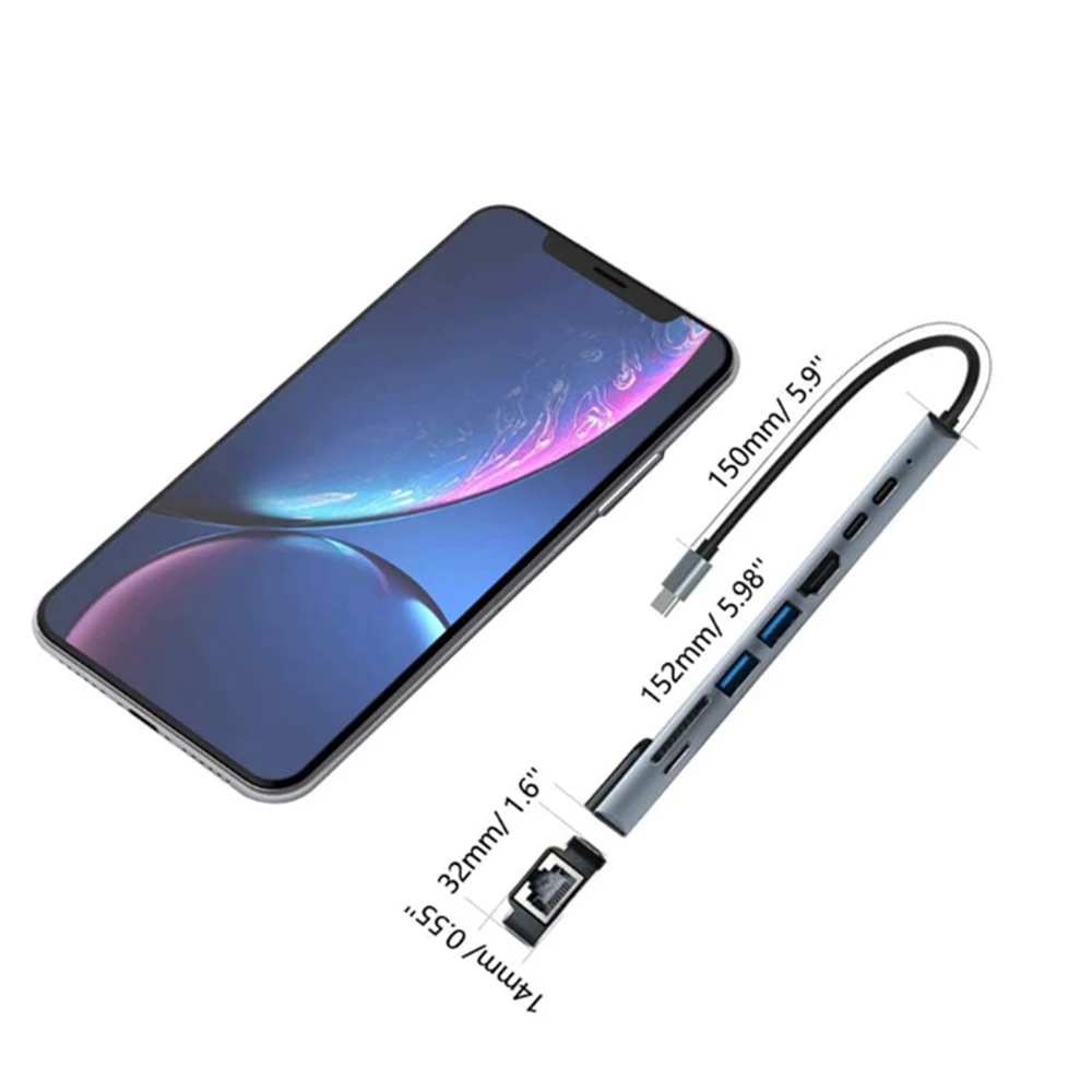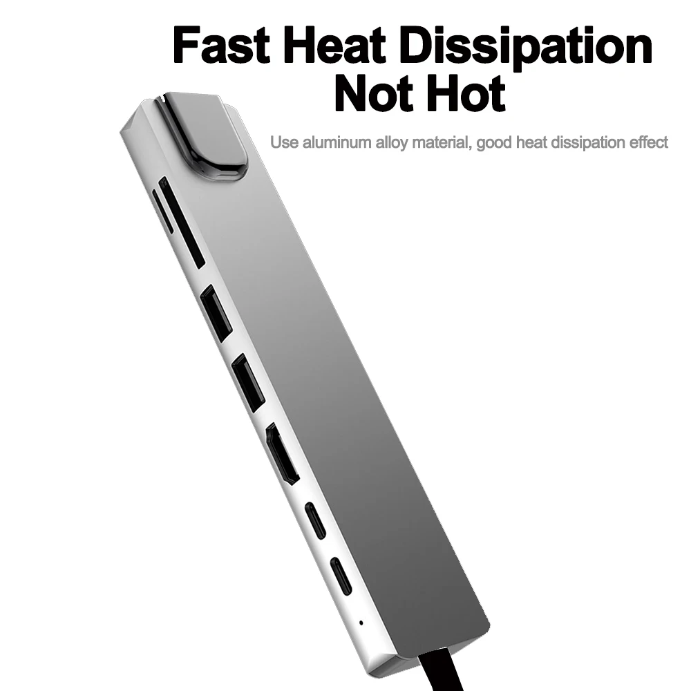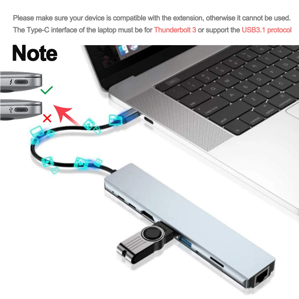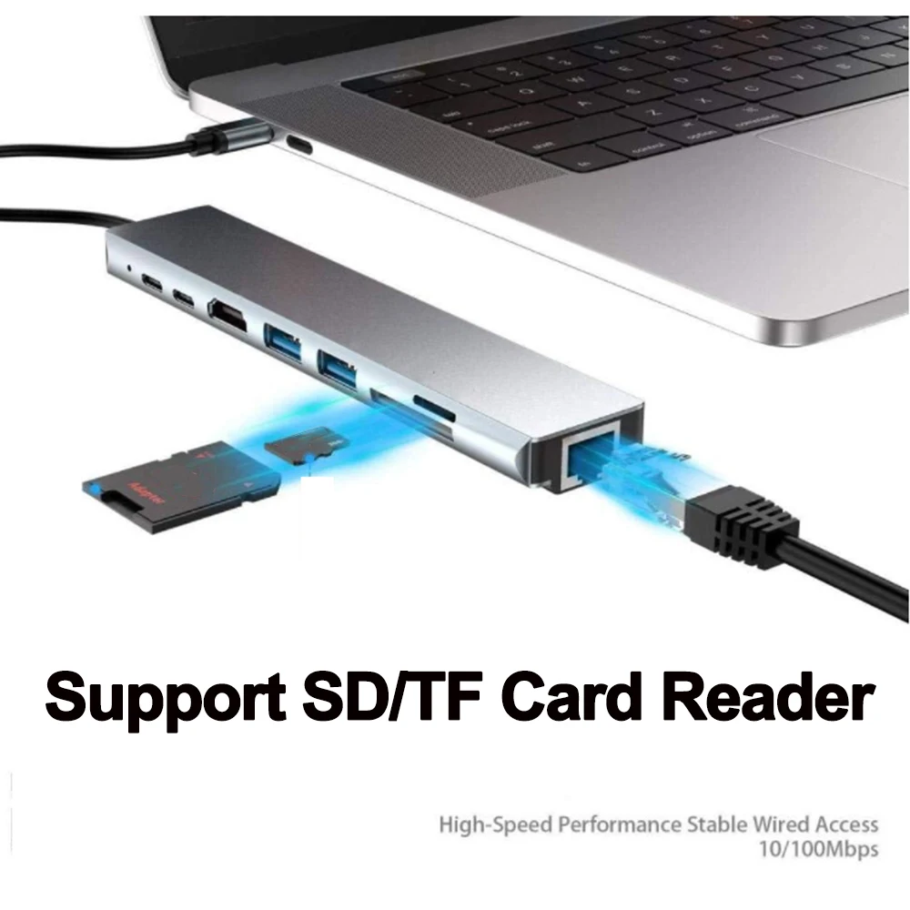 Comprar Hub USB C 8 en 1 tipo C 3,1 a 4K, adaptador Compatible con HDMI con lector de tarjetas SD/TF RJ45, carga rápida PD para base USB Thunderbolt 3