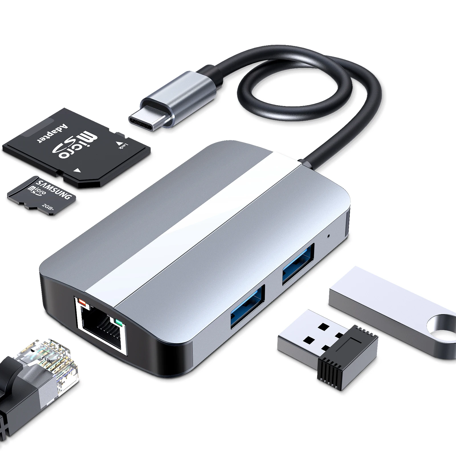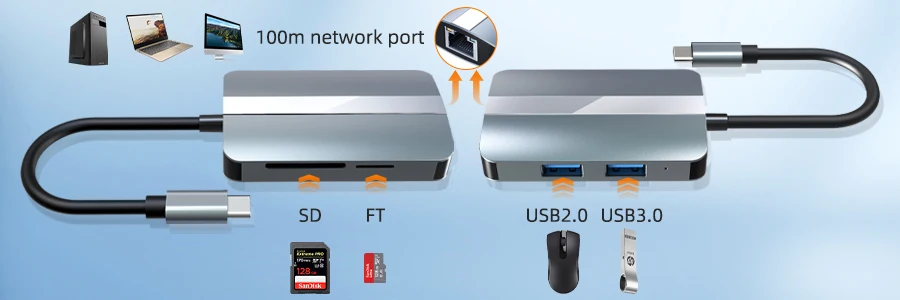 Comprar Hub USB C a HDMI compatible con Rj45 100M, adaptador VGA OTG Thunderbolt 3 Dock con PD TF SD jack3.5 mm para Macbook Pro/Air M1 Huawei