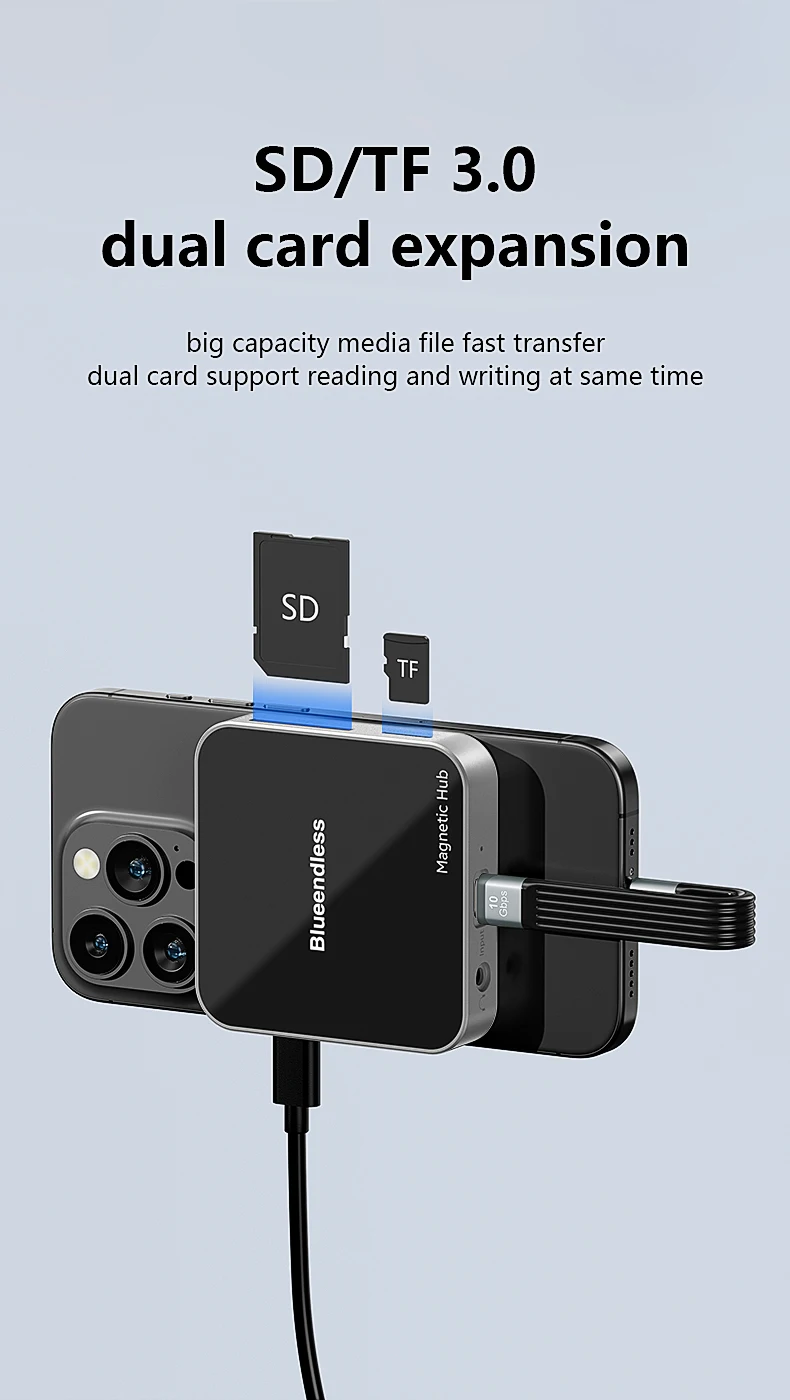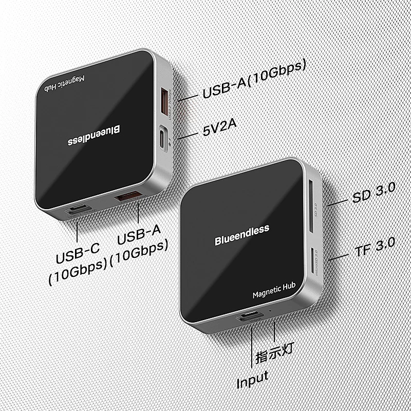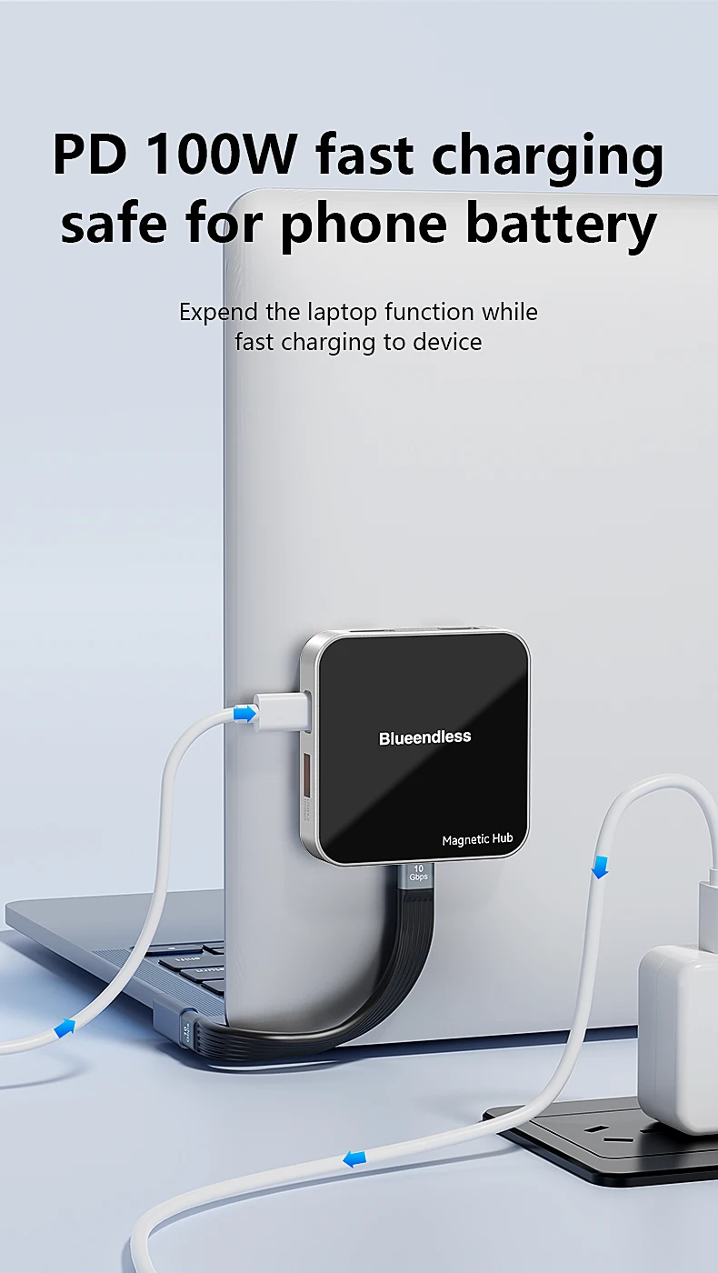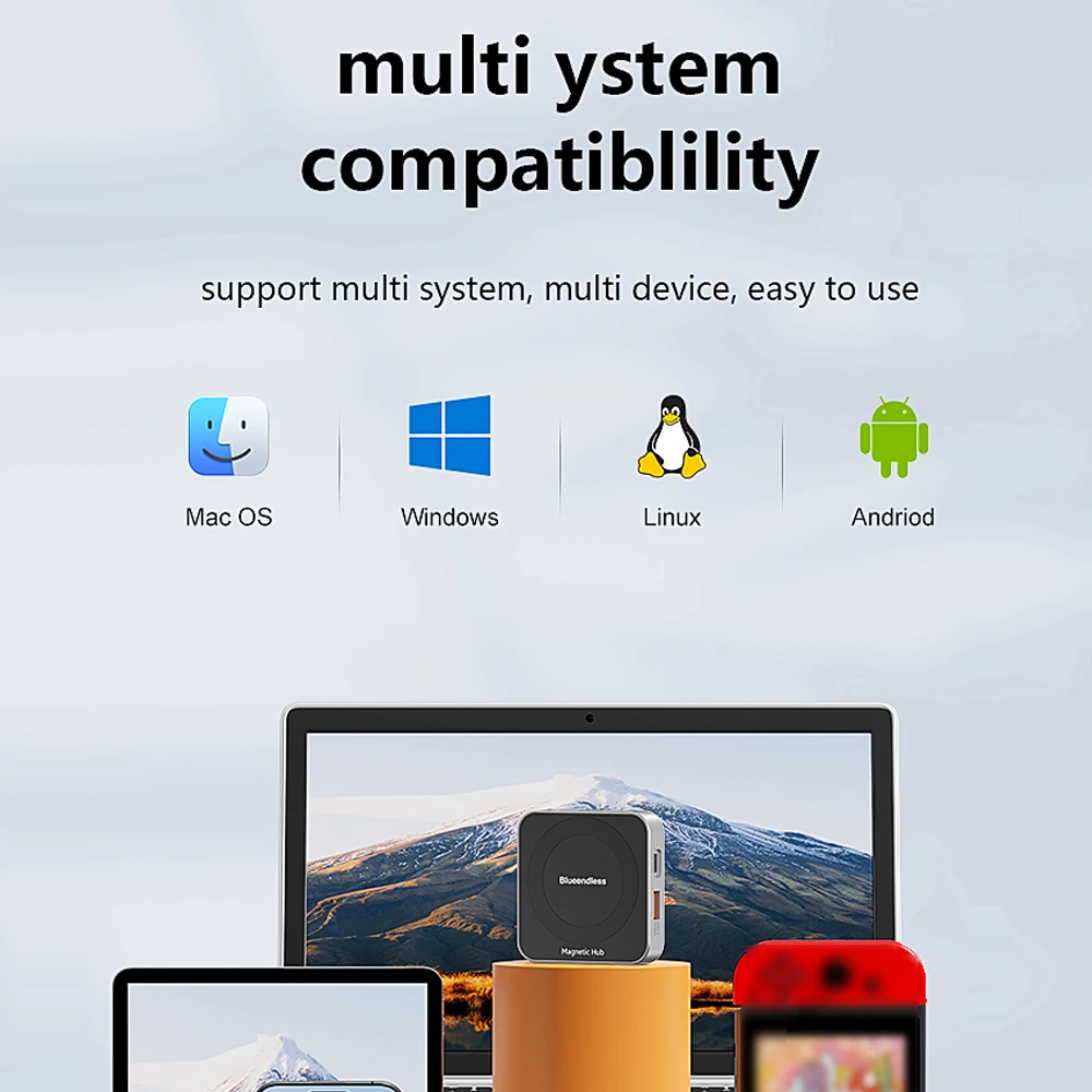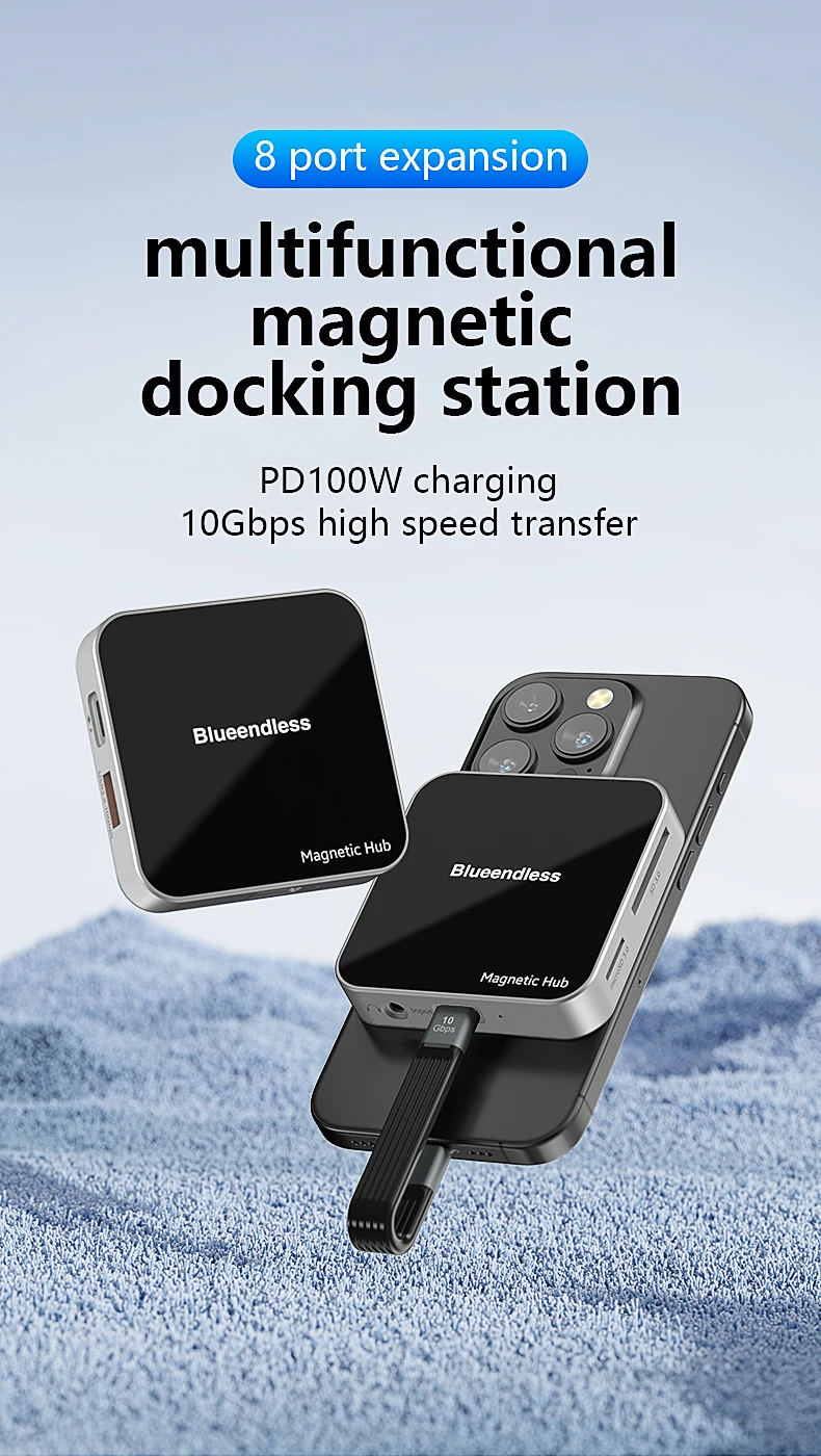 Comprar Hub USB C magnético 8 en 1, estación de acoplamiento tipo C, divisor USB3.2 compatible con HDMI, lector de tarjetas 2 en 1 SD/TF para PC, portátil y teléfono