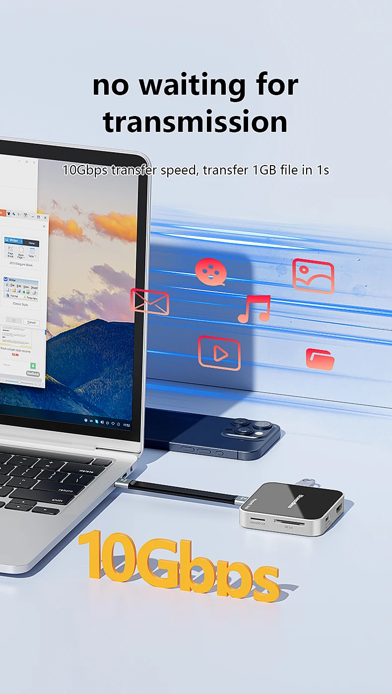 Velocidad de transferencia de 10 Gbps, transferencia de archivos de 1 GB en 1 s