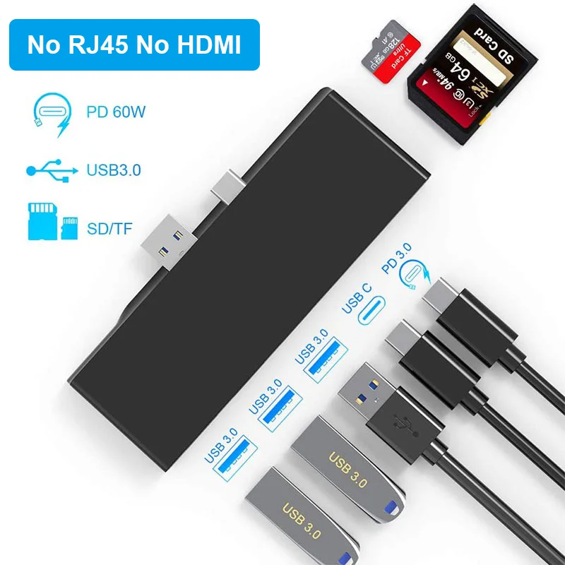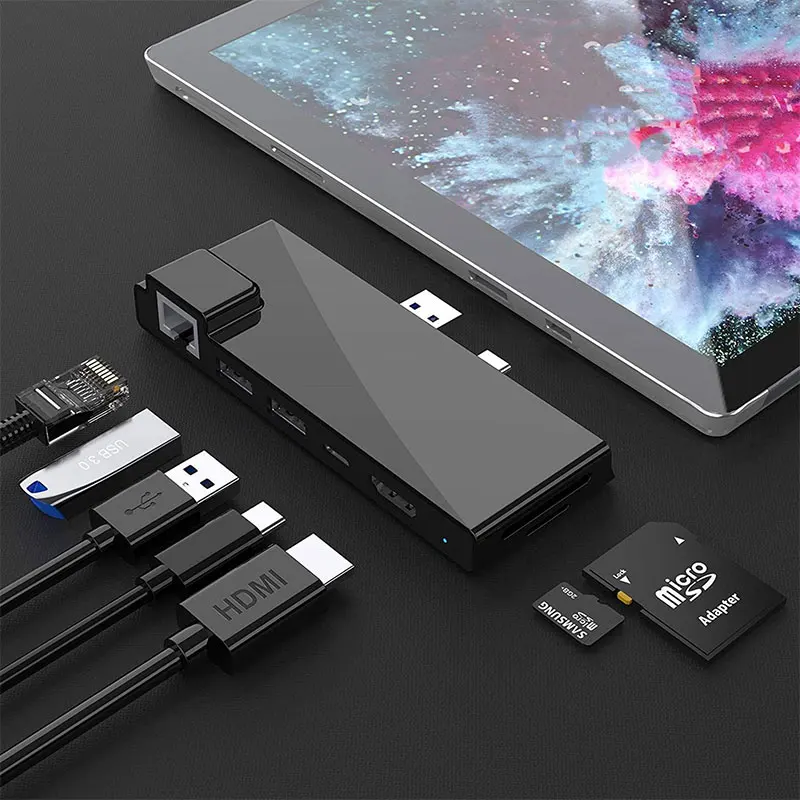HUB USB C para Microsoft Surface Pro 7, base adaptadora con concentrador multipuerto USB 3,1 a HDMI 4K 100Mb RJ45 PD, divisor para conectar TV