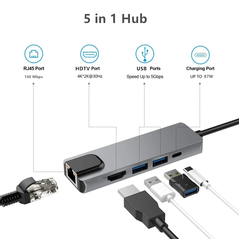 Modelo 1: Tipo C a USB C/USB 3.0/USB 2.0/HDTV/RJ45;