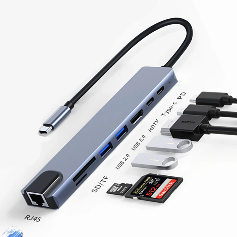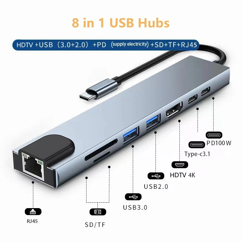 Modelo 2: Tipo C a HDTV/RJ45/USB 3.0/USB 2.0/USB-C*2/SD/TF.