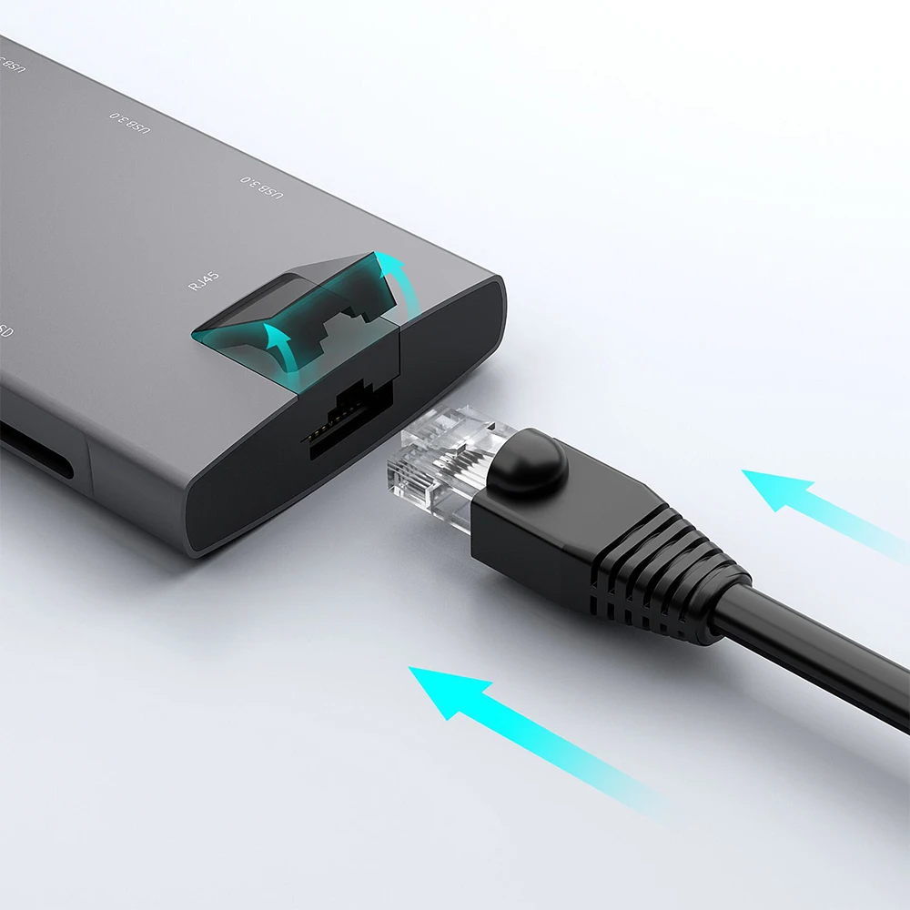 Estación de acoplamiento multifunción 8-En-1: 3 * USB3.0 + + SD + MCRO SD + RJ45 + HDMI