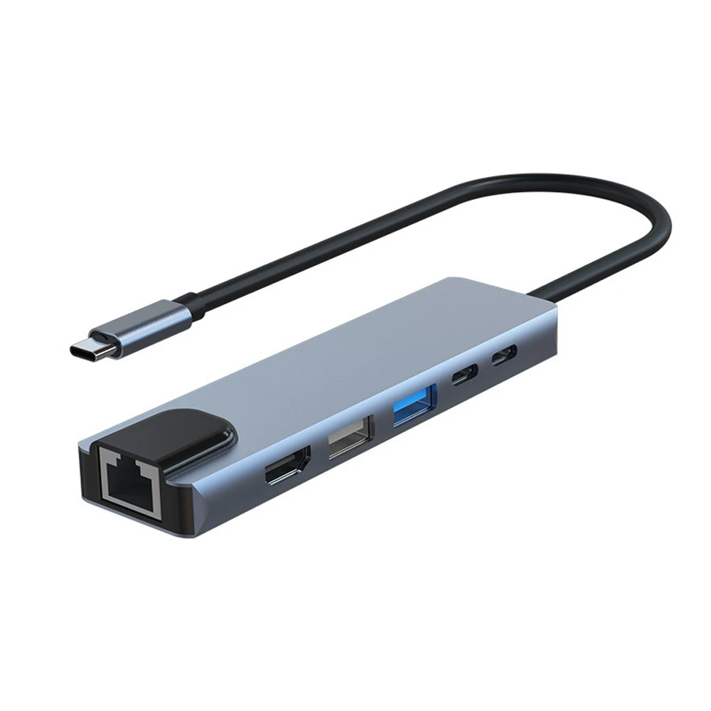 Comprar Hub USB tipo C de alta transmisión RJ45 6 en 1 estación de acoplamiento USB 3,0 admite estación de acoplamiento para ordenador portátil de carga inversa de 65W USB C