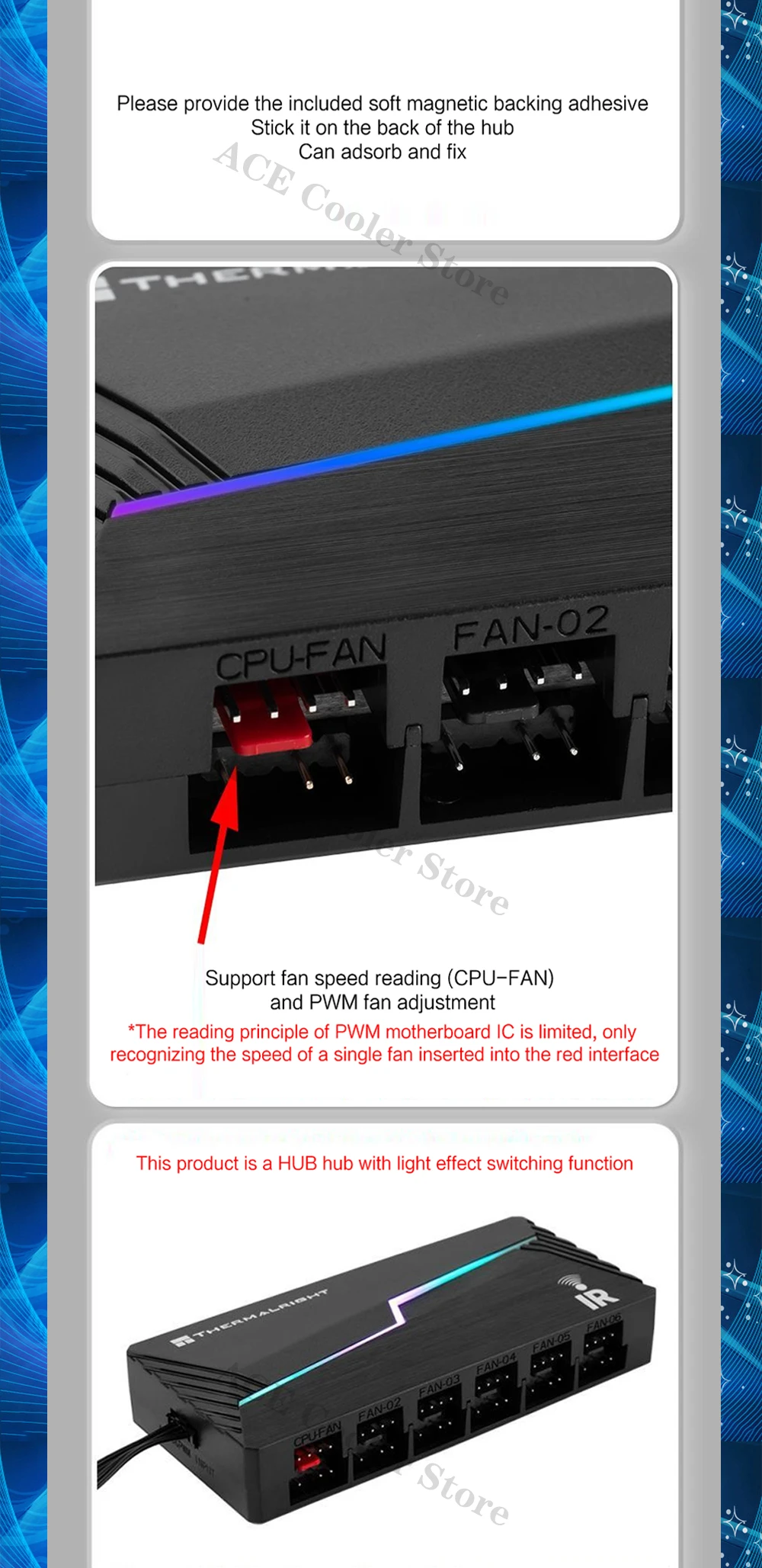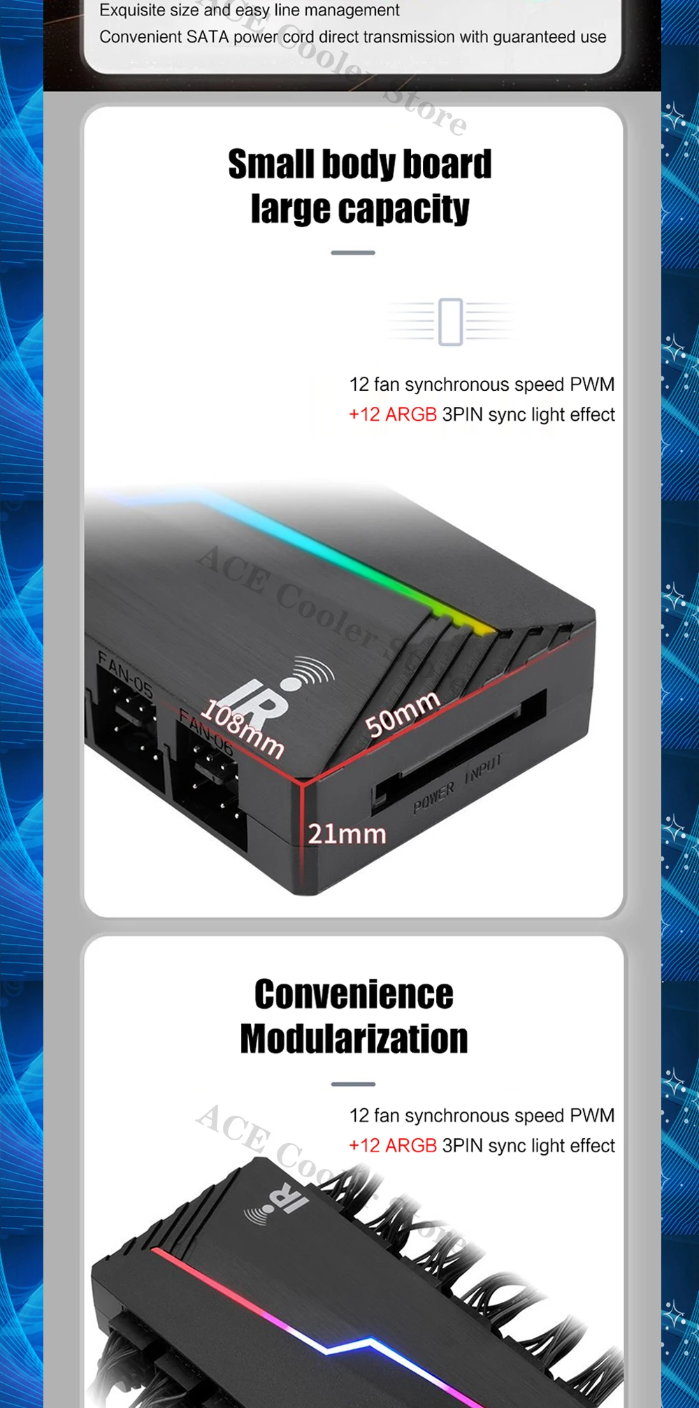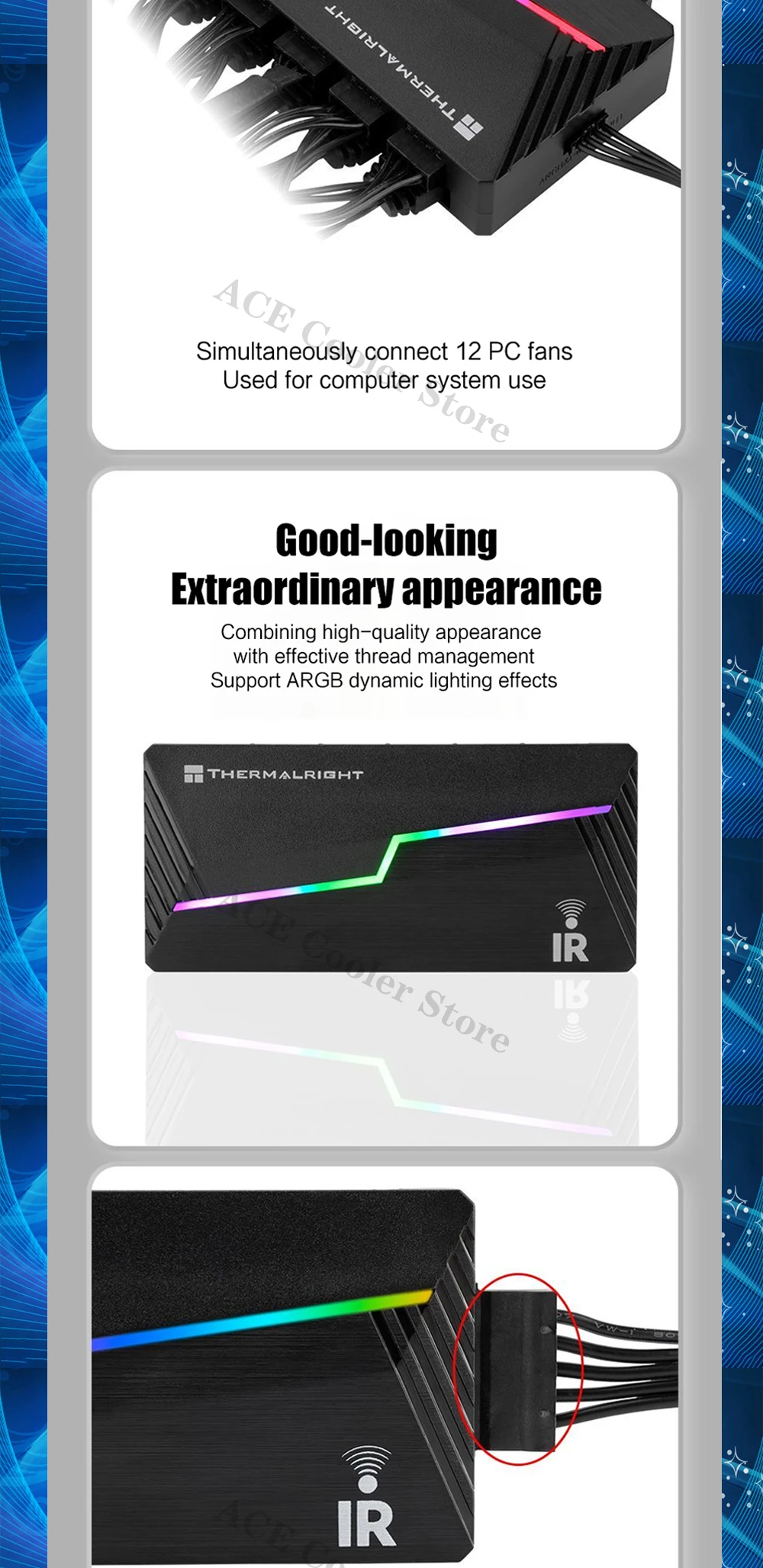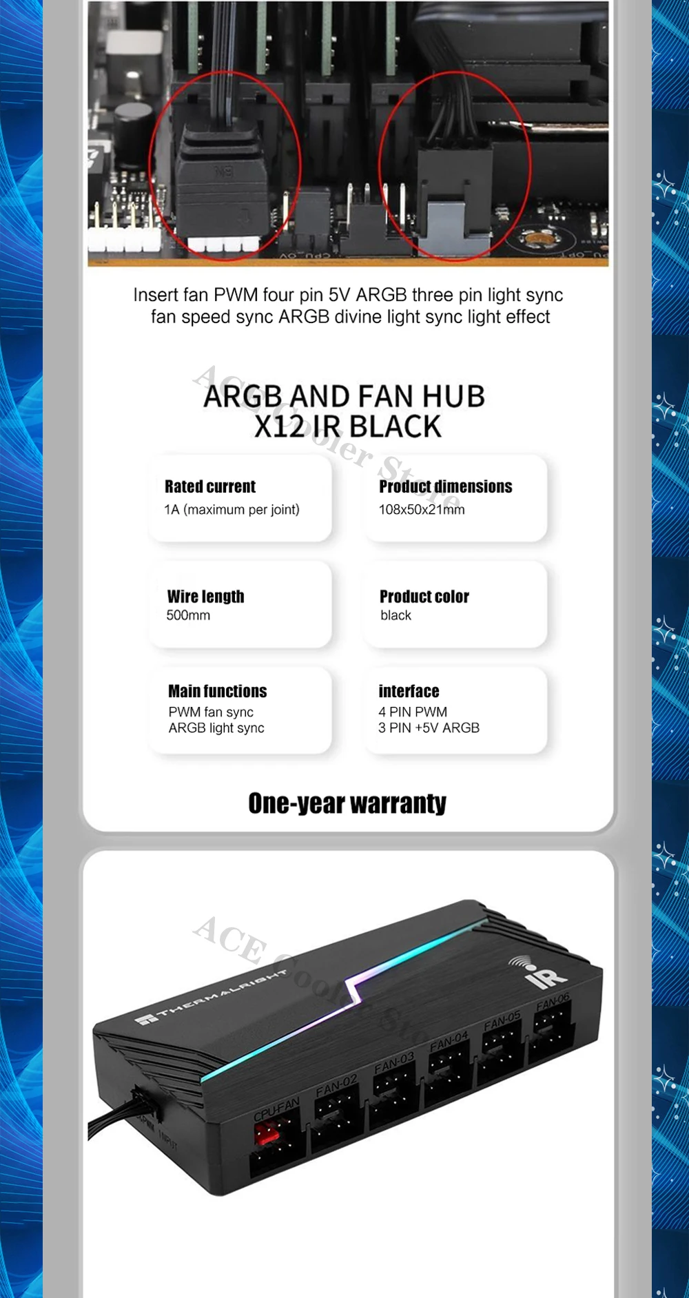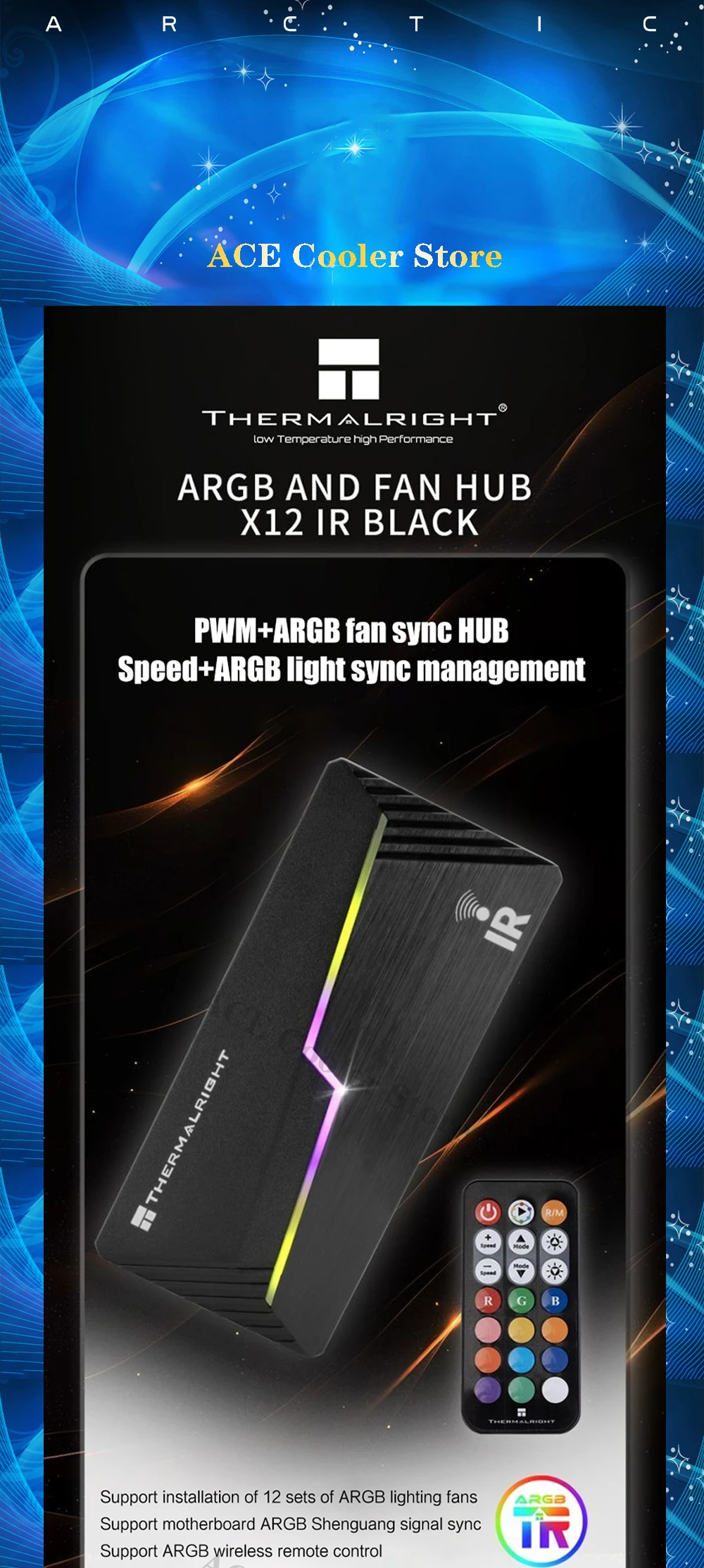 Hub de ventilador ARGB, control remoto por infrarrojos compatible con computadora PWM+Light AURA SYNC, interfaz de cabezales 12X