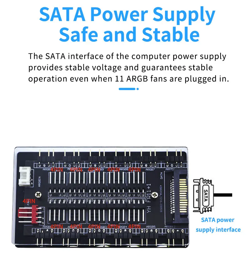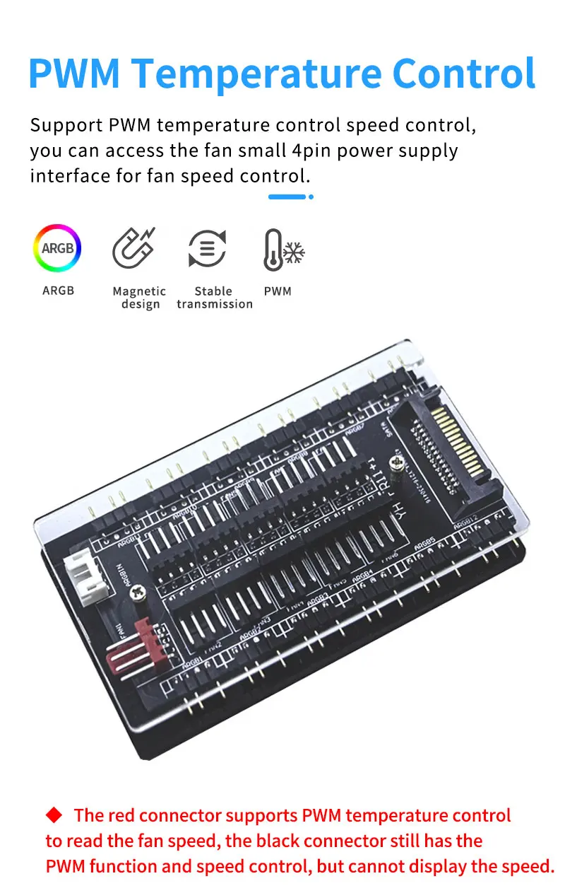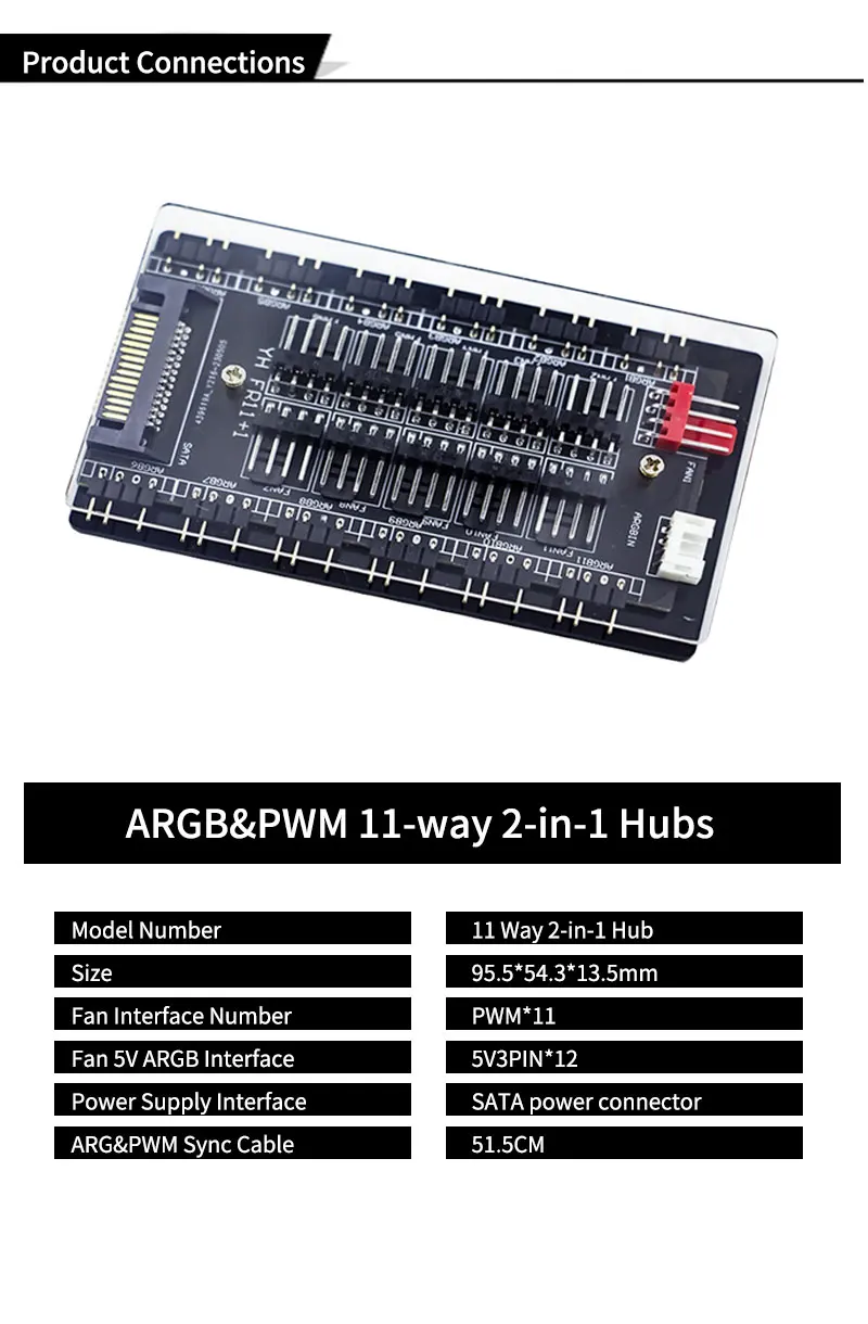 Hub de ventilador multidivisor magnético 2 en 1, 11 vías, 5V, 3 pines, ARGB, 12V, 4 pines, interfaz PWM, alimentación SATA, accesorios de refrigeración para chasis de PC