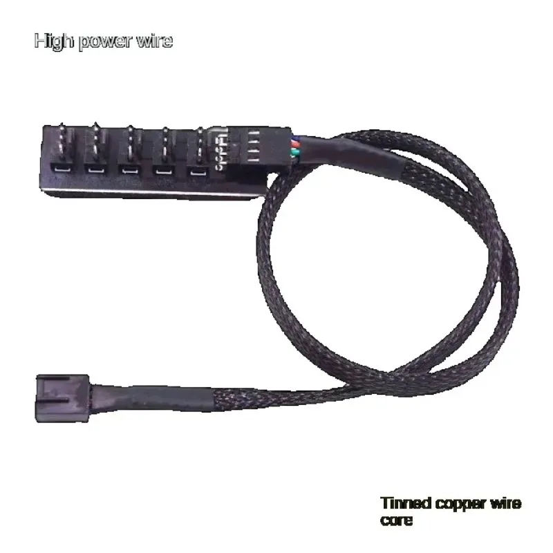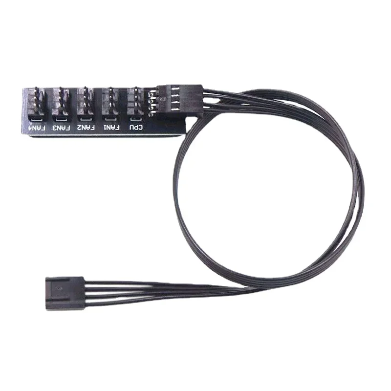 【Nombre del producto】: concentrador de ventilador de computadora intercambiable con interfaz 2510 de segunda generación【Tamaño del producto】: largo 5,8 cm, ancho 1,8 cm[Longitud del cable]: 35 cm (se pueden personalizar otros tamaños)[Cantidad de extensión]: 5Modelo de cable: 1007 22AWG【Material aislante】: aislamiento de PVC【Especificación del conductor】: 17 * 0,12TS【Material del conductor】: cobre estañado【Diámetro exterior del cable】: OD1,4 mm * 4Temperatura nominal: 80℃[Color del cable]: Negro【Peso del producto】: 16 g sin malla, 19 g con malla【Interfaz del producto】: un extremo tiene un soporte de aguja de 4 pines y el otro extremo tiene una interfaz de 4 pines en la placa base de la computadora.【Función del producto】: Habilite a cinco ventiladores de computadora para compartir una interfaz de 4 pines【Método de embalaje】: Bolsas de película nacaradaPropósito:1: Amplíe la interfaz del ventilador de 5 bits de 3 pines/4 pines para abordar interfaces insuficientes de la placa base y el procesamiento centralizado de los cables del ventilador.2: La interfaz de la CPU está conectada a la interfaz del ventilador de la CPU de la placa base y a la primera interfaz dedicada del ventilador de la CPU. La interfaz FAN1/FAN2/FAN3/FAN4 es una interfaz de ventilador PWM convencional.