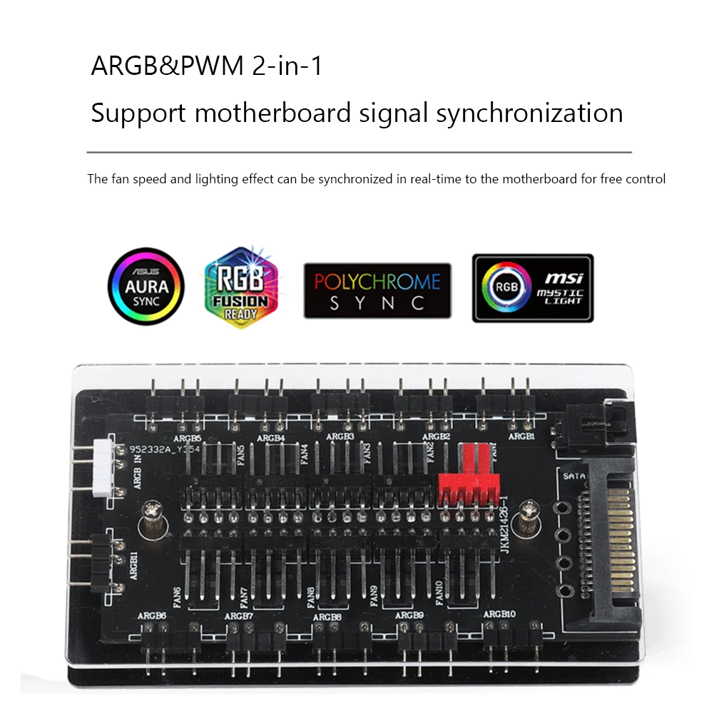 Característica:1. ARGB + PWM + Control remoto 3 en 1:Hasta 10 juegos de 5V/3 pines programables ARGB + pequeñas interfaces de ventilador 4P/FAN, equipadas con cable de conexión de placa base y cable de señal de control de temperatura PWM. La velocidad del ventilador y el efecto de iluminación se pueden sincronizar en tiempo real con la placa base para un control gratuito, admite la sincronización de la señal de la placa base y puede controlar simultáneamente 10 ventiladores para satisfacer sus necesidades de conexión de más dispositivos.