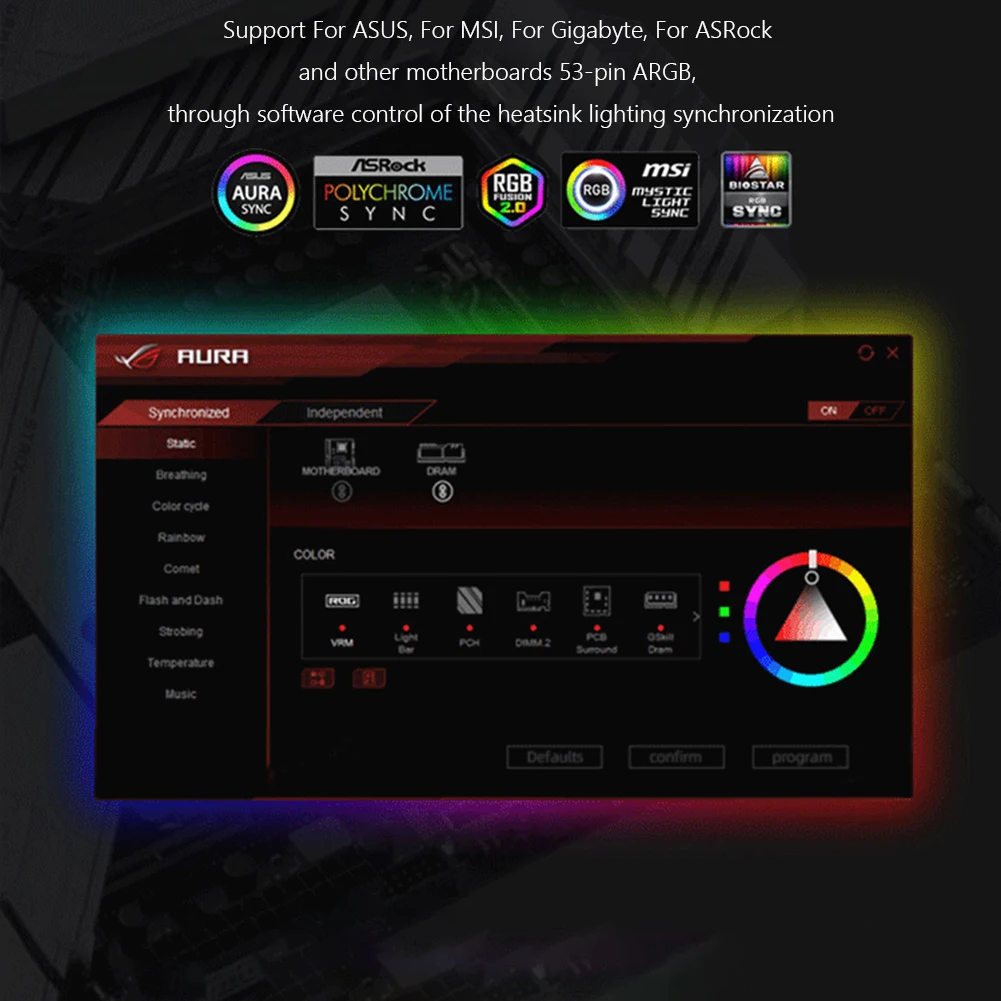 Modo de control: control de temperatura inteligente PWM, sincronización de placa principal 5V ARGB Shenguang