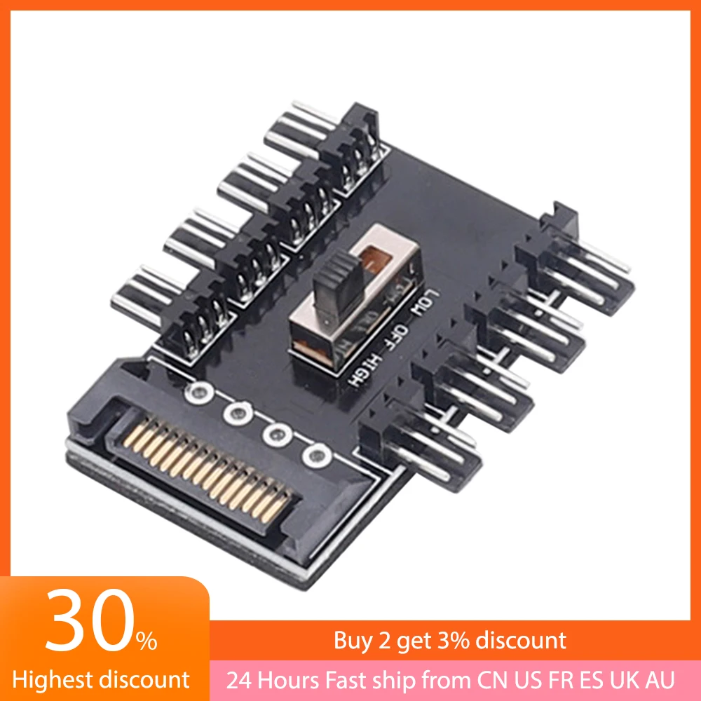 Comprar Hub de ventilador de refrigeración para PC, 1 a 8, 3 pines, 12V, distribuidor, toma de corriente, adaptador PCB, controlador de velocidad de ordenador, nivel 2