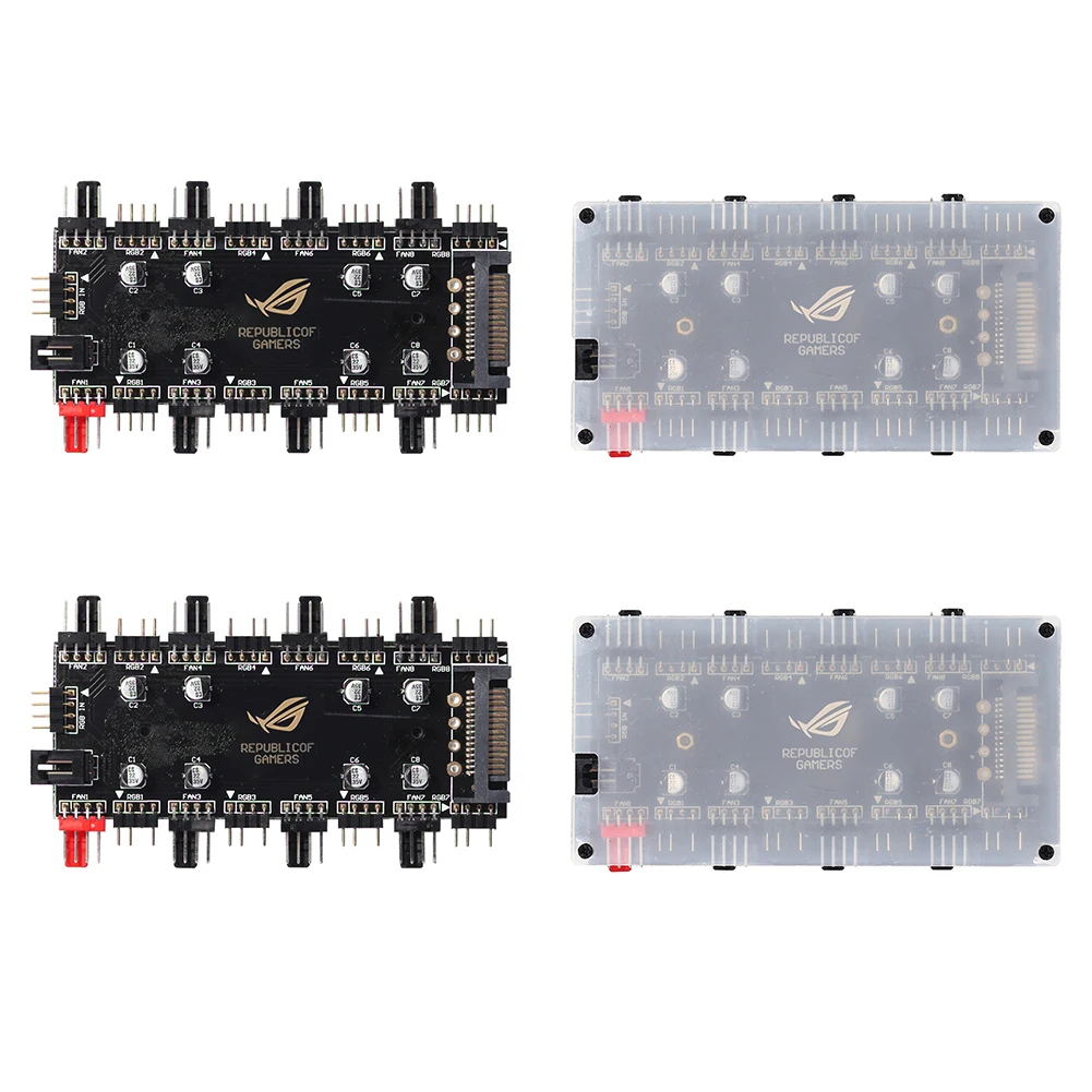 Comprar HUB de ventilador de refrigeración para placa base, divisor de 1 a 8 vías, RGB, PWM, 5V, 3 pines/12V, 4 pines, adaptador de Control de tira de luz LED, SATA /4D
