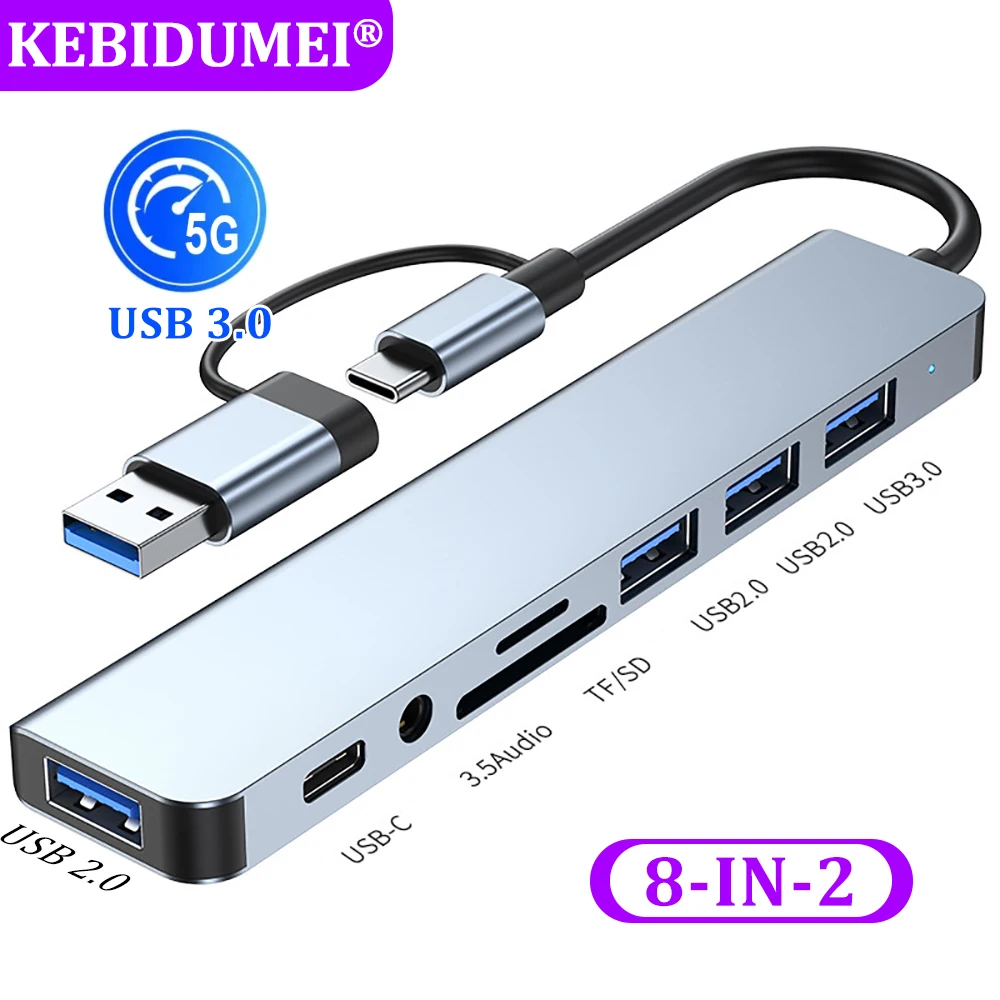 Comprar Hubs USB 3,0 USB C HUB estación de acoplamiento USB C adaptador de transmisión de alta velocidad de 5Gbps OTG tipo C a USB SD TF 3,5 MM para Macbook Pro
