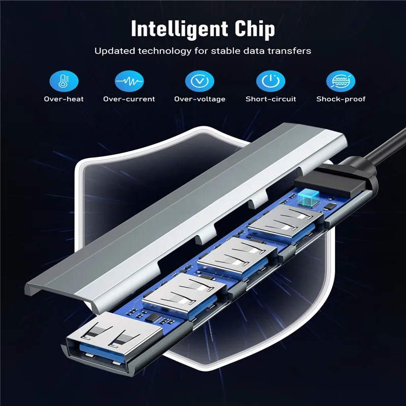 Comprar Hubs USB 4 en 1, concentrador USB 3,0, divisor Multi USB, transmisión de alta velocidad de 5Gbps, adaptador OTG, estación de acoplamiento USB para PC y portátil