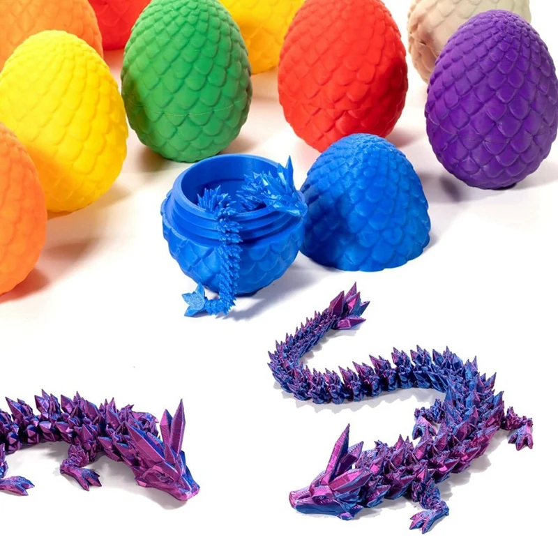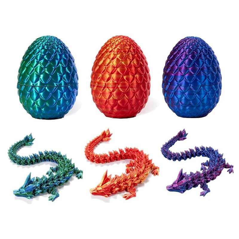 Huevos de Pascua de dragón de 3 piezas, juguete antiestrés de huevo de dragón, regalos de juguete sorpresa con dragón articulado de 12 pulgadas, huevo de dragón impreso en 3D