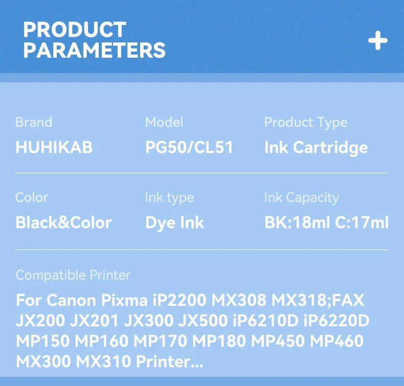 Antes de comprar, confirme que el uso de su impresora sea el cartucho de tinta Canon PG-50 CL-51 o PG-50XL CL-51XL antes, luego puede funcionar.