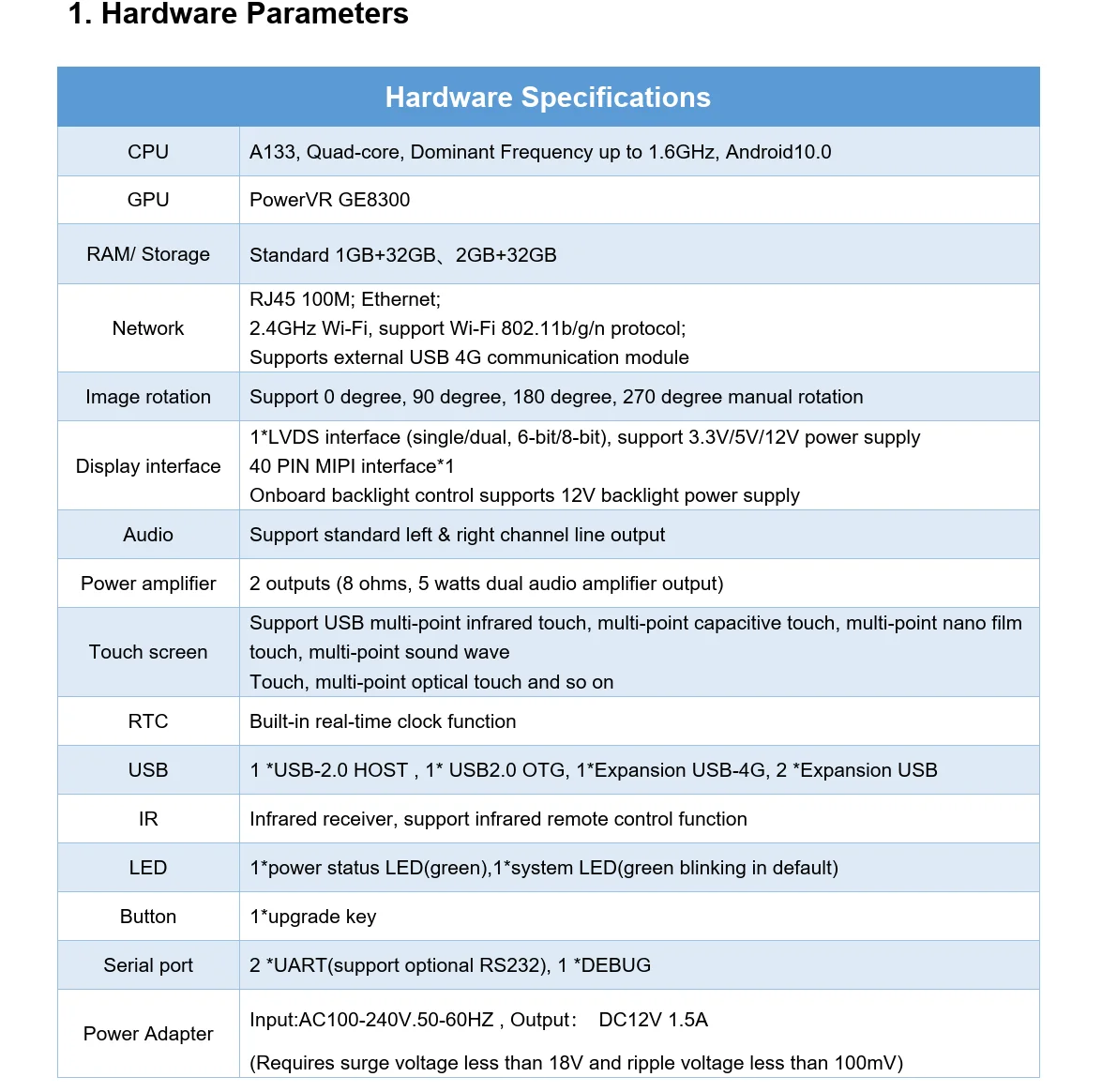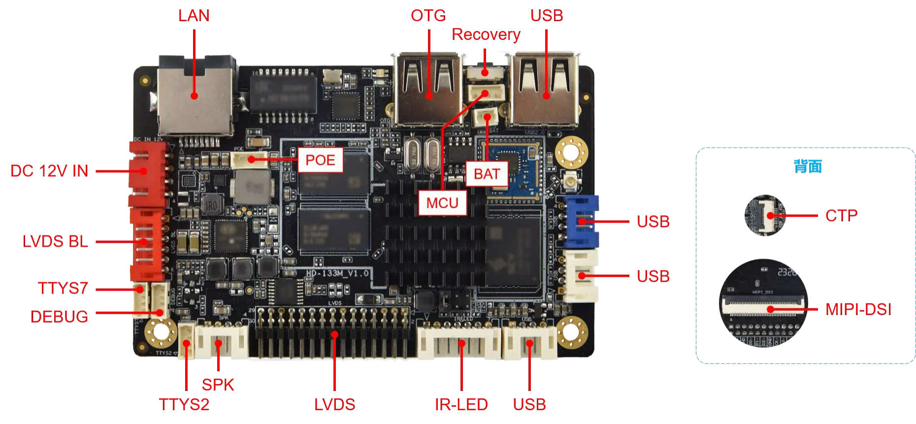 Alta integración. Integra Ethernet, Wi-Fi, amplificador de potencia, tarjeta de expansión TF, puerto de expansión USB, función de control remoto IR, LVDS, control de retroiluminación, micrófono y otras funciones.