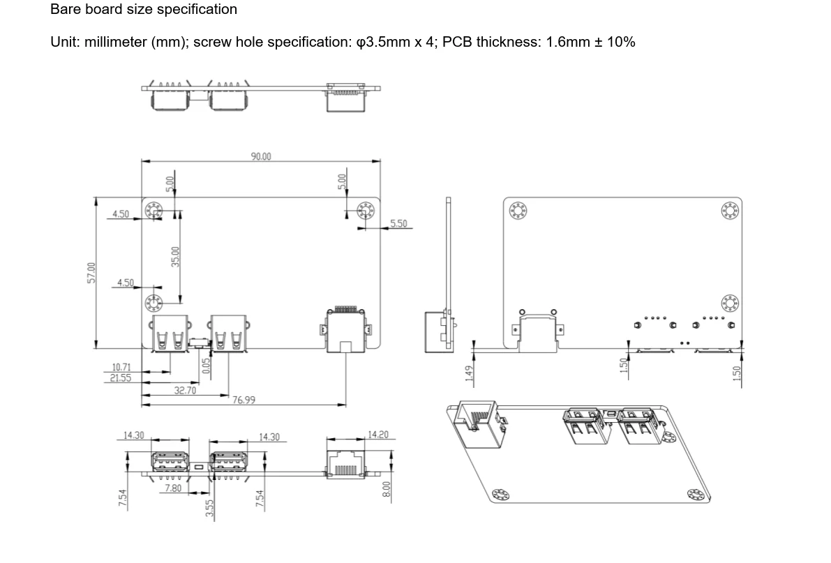 Alta escalabilidad. 5 * USB (3 * Pines, 2 * estándar), puertos serie 3 * (2 * UART, 1 * DEBUG).