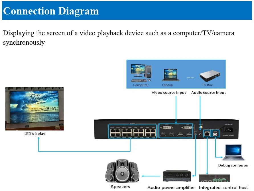Comprar Huidu-controlador de Video LED VP1640, procesamiento de Video integrado, funciones de tarjeta de envío, compatible con entrada 4K