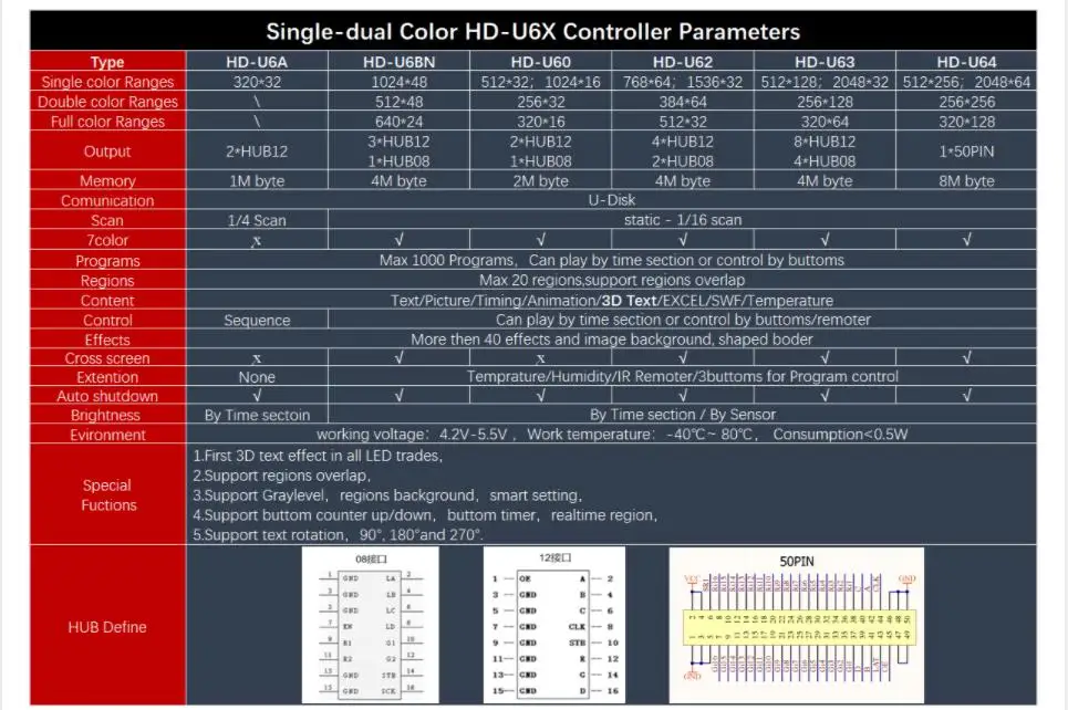 Huidu U60 1 * HUB08 y 2 * HUB12 512*32 256*32 1024*16 512*16 USB HD U60 Tarjeta de control LED de un solo color y doble