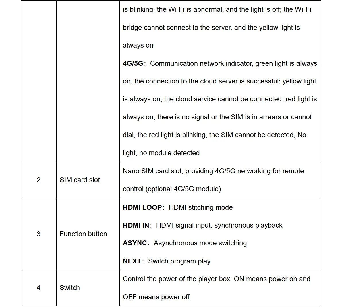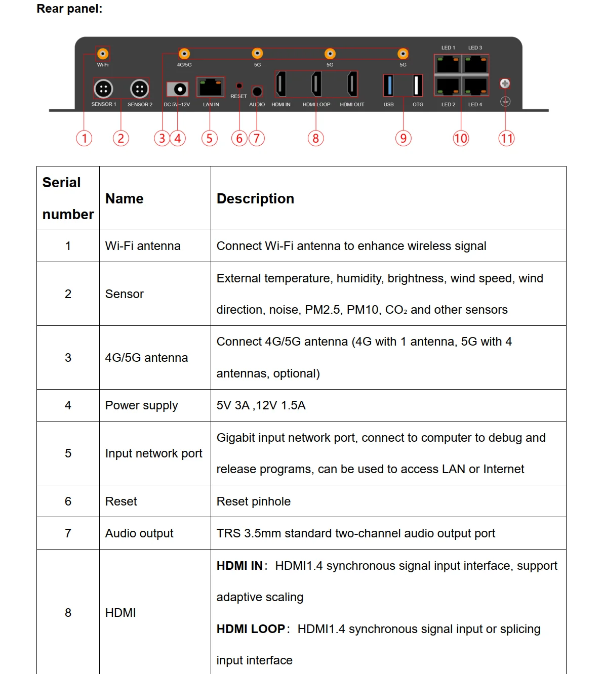 Configuración estándar de Wi-Fi de doble banda, compatible con aplicación de teléfono móvil - control inalámbrico "LedArt";admite visualización de pantalla inalámbrica de teléfono móvil/tableta;admite acceso a la plataforma "Xiaohui Cloud", fácil de lograr gestión de clúster remoto por Internet;El espacio de almacenamiento de capacidad hace que la reproducción asíncrona sea sin preocupaciones;Admite la conexión externa de varios sensores de monitoreo ambiental para realizar la visualización en tiempo real de los datos de monitoreo ambiental.