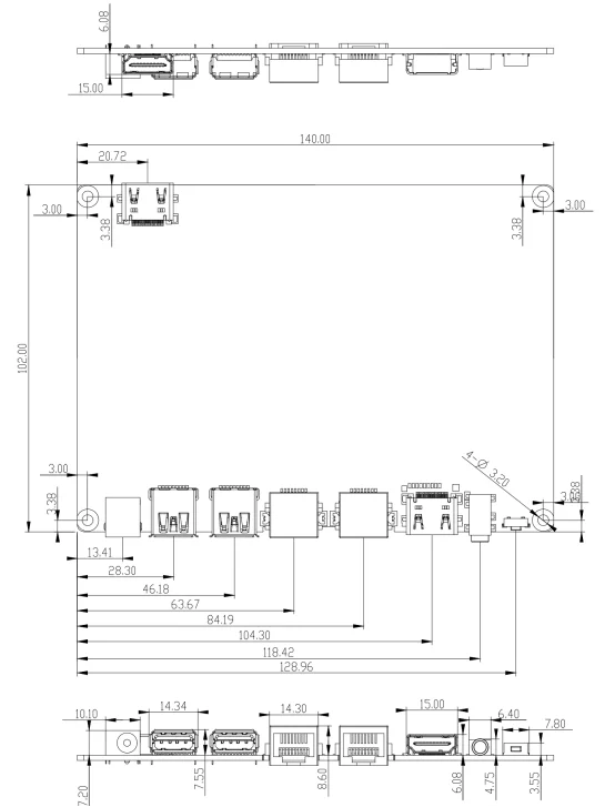 ● Alta escalabilidad. Seis puertos USB (dos USB 3,0, cuatro USB 2,0), 3 puertos serie + 1 puerto serie de depuración expandible, cinco puertos de expansión IO pueden expandir más dispositivos periféricos.