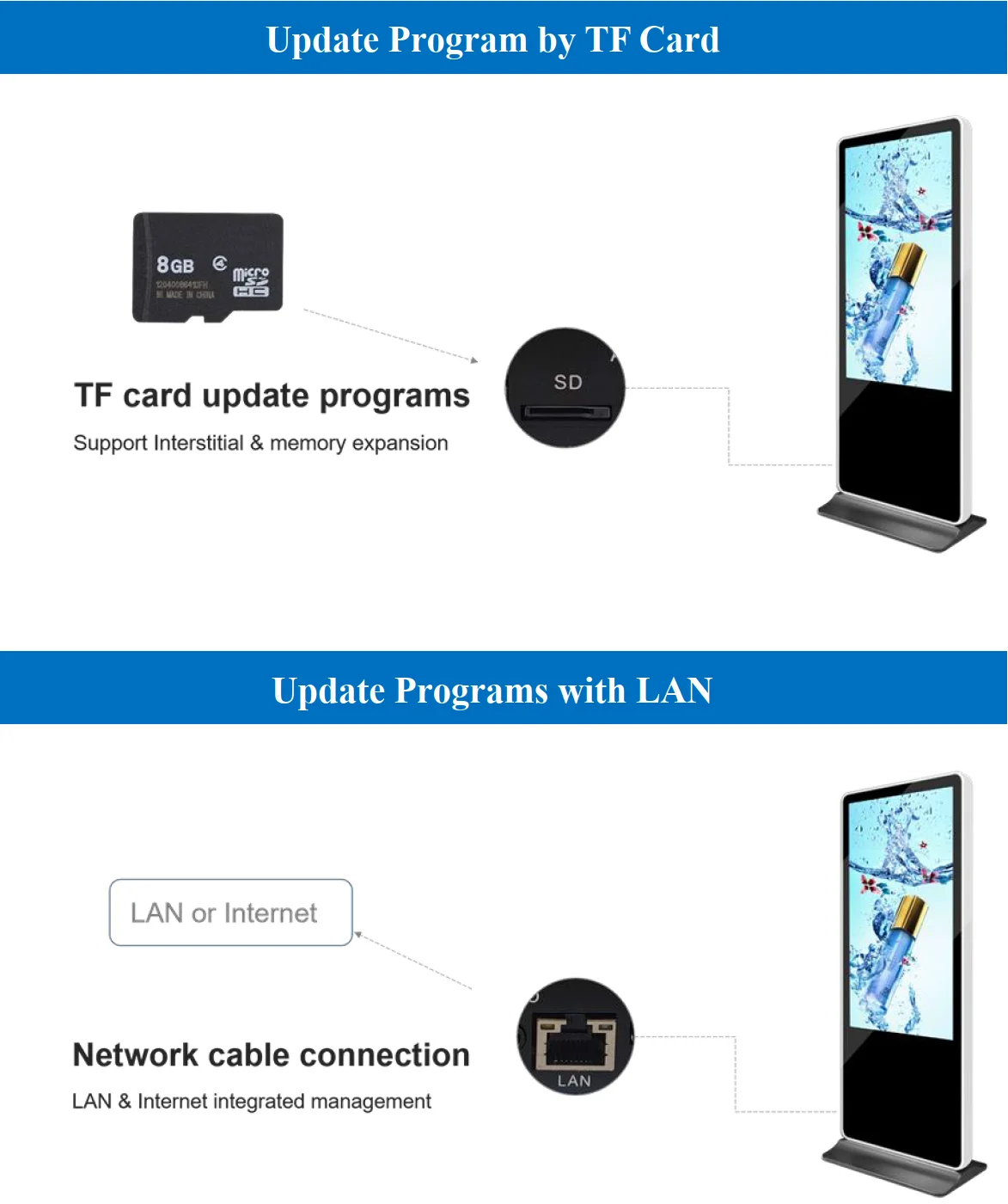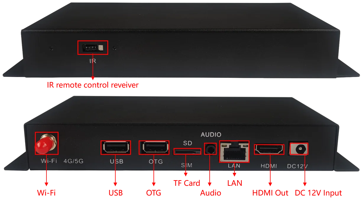 Es una placa base de señalización digital LCD bien construida, que utiliza la solución de chip A40i de cuatro núcleos, la frecuencia más alta es de 1,2 GHz y se adopta la GPU DE LA Mail-400MP2. que puede ser compatible con la mayoría de los formatos de vídeo y capacidades de decodificación. Y viene con módulo WIFI, compatible con aplicación móvil de mensajería inalámbrica punto a punto; La interfaz RJ45 se puede conectar a Internet o LAN para realizar la gestión del clúster de red.