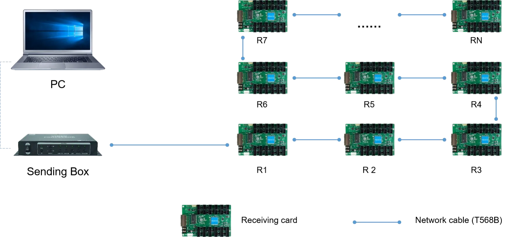 Connect the sending card or receiving card regardless of the input/ output interface.