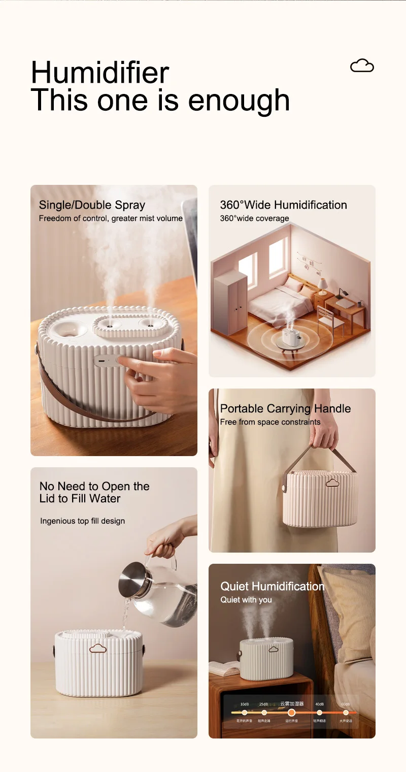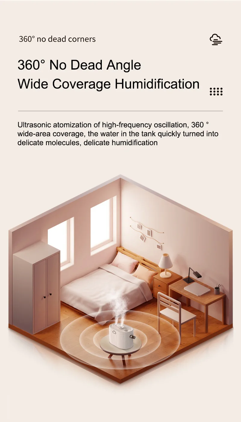 Comprar Humidificador de gran capacidad de 2L, humidificador con puertos de niebla duales, humidificador de aire con apagado automático, humidificador USB 360 ° Humidificador de cobertura