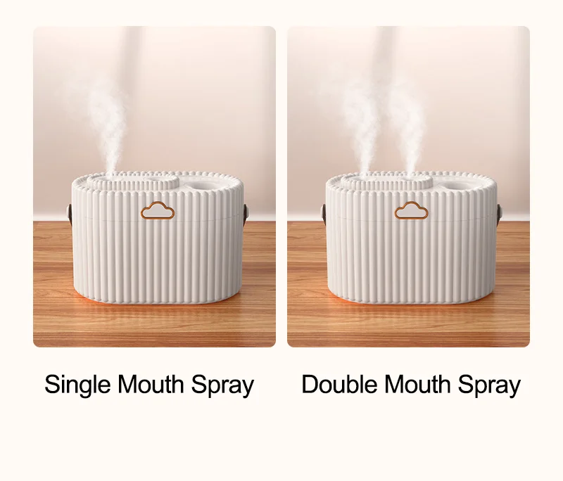 1.Cuando se enciende la alimentación: 1) Mantenga presionado para encender el rociado continuo.2) Presione brevemente hacia la izquierdaspray, 3) Presione brevemente el spray derecho, 4) Luego presione brevemente los lados izquierdo y derecho al mismo tiempo paraconéctelo con el aerosol, 5) Luego presione brevemente para cambiar entre el aerosol izquierdo y derecho durante 3 segundos y deténgase durante3 segundos.6) Presione brevemente nuevamente para apagar el spray2. Función de sincronización de pulverización:1) Pulverización continua, detiene automáticamente la pulverización después de 10 horas2) Pulverización intermitente, detiene automáticamente la pulverización después de 20 horasAviso1 Agregue agua antes de usar este producto. Prohibir el uso de humidificadores sin gastar agua.2 se puede agregar una pequeña cantidad de sabor, se recomienda usar agua de aromaterapia a base de agua, no agregar grasaaceites esenciales.De lo contrario, el aceite bloqueará el spray.3 Este producto tiene una función de apagado automático.Cuando expire el tiempo de pulverización, el producto automáticamentedejar de rociar.Si necesita continuar usándolo, observe primero el volumen de agua.luego presione el botón de funciónnuevamente para comenzar a pulverizar4 No enjuague directamente con agua al limpiar los productos. Se recomienda limpiar con un algodón suave.tela5 Este producto no se puede utilizar solo para niños menores de 10 años.