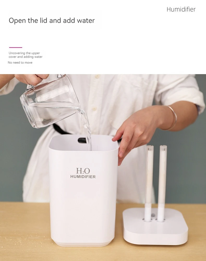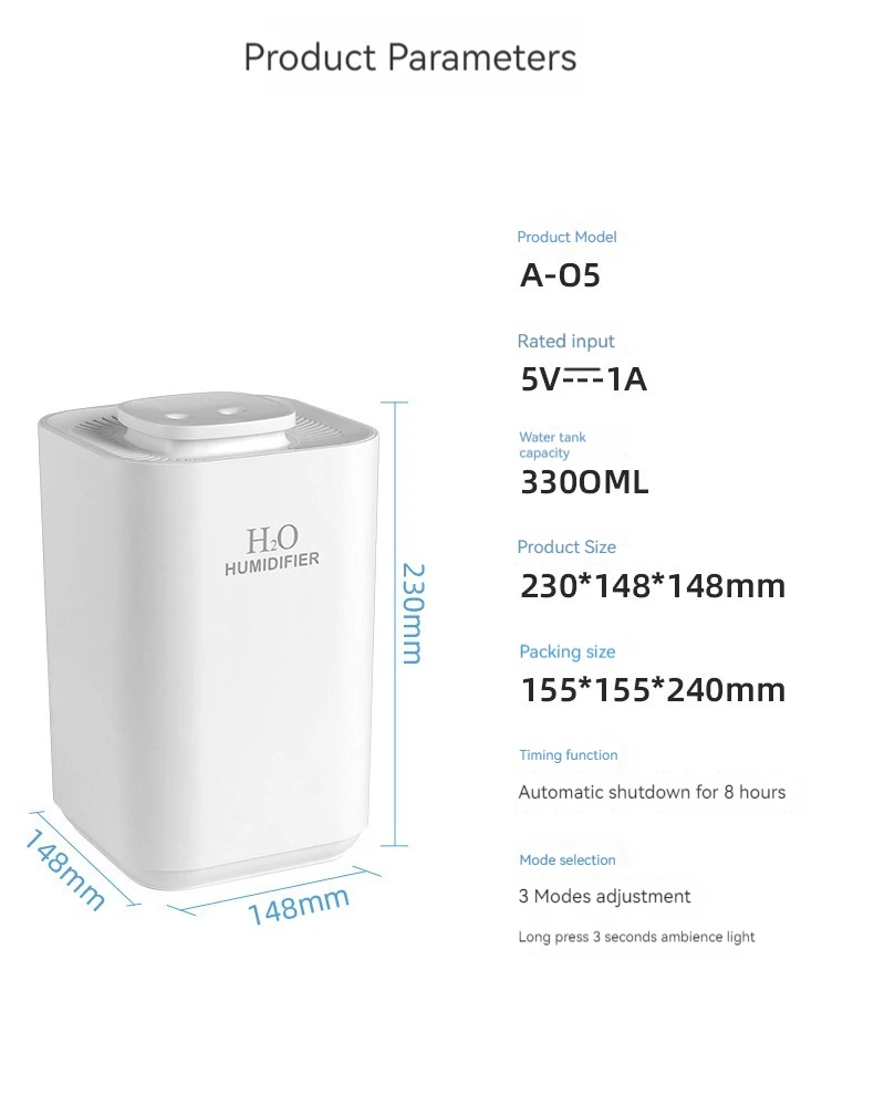 2. La capacidad total del humidificador es de 3,3 L, una tasa de uso de litro de aproximadamente 8 horas.