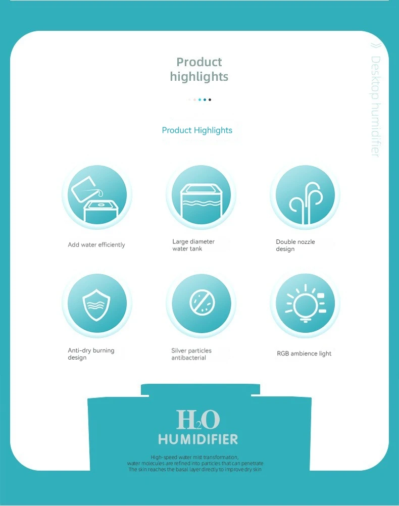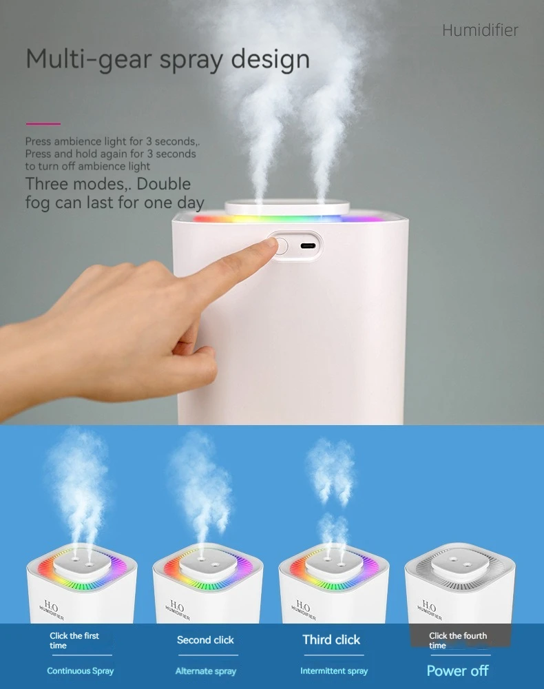5.Es mejor usar el humidificador en la temporada de otoño e invierno. Ambientes con aire acondicionado, calefacción, etc. para mantener al menos 1 metro de distancia de uso.