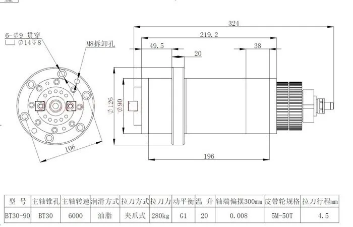 Husillo ATC BT30 Husillo CNC Fresado Rounter Motor de husillo eléctrico 220V con correa síncrona para resorte BT30