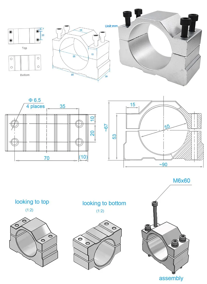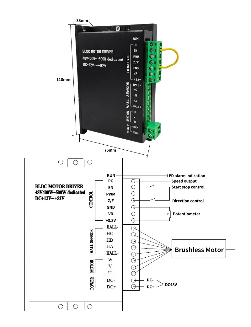 Comprar Husillo sin escobillas 48V 500w ER11 controlador de Motor de husillo CC sin escobillas sensor HALL incorporado con soporte de abrazadera de 57MM