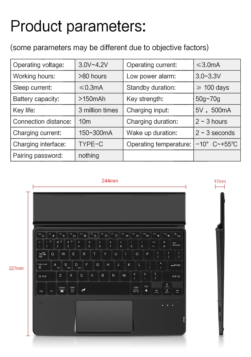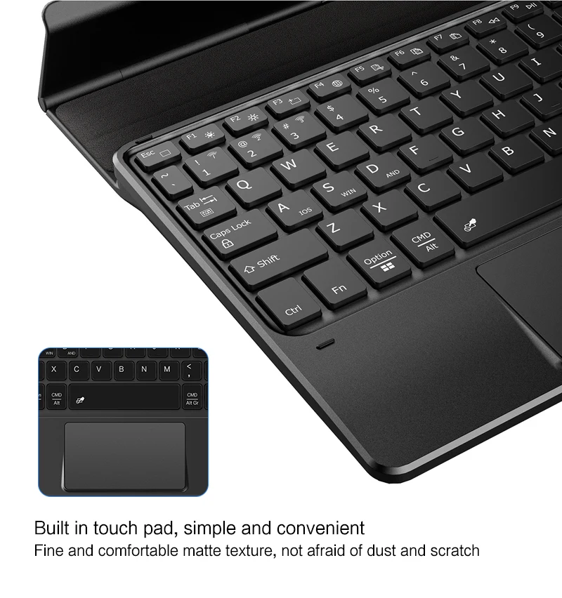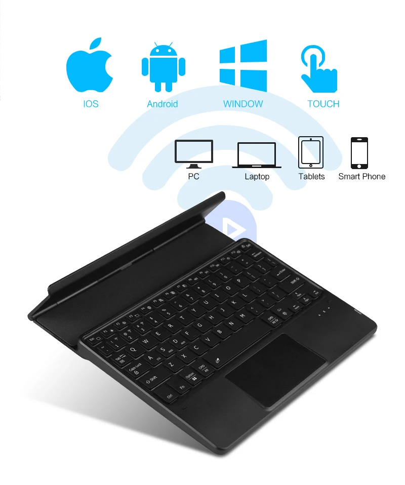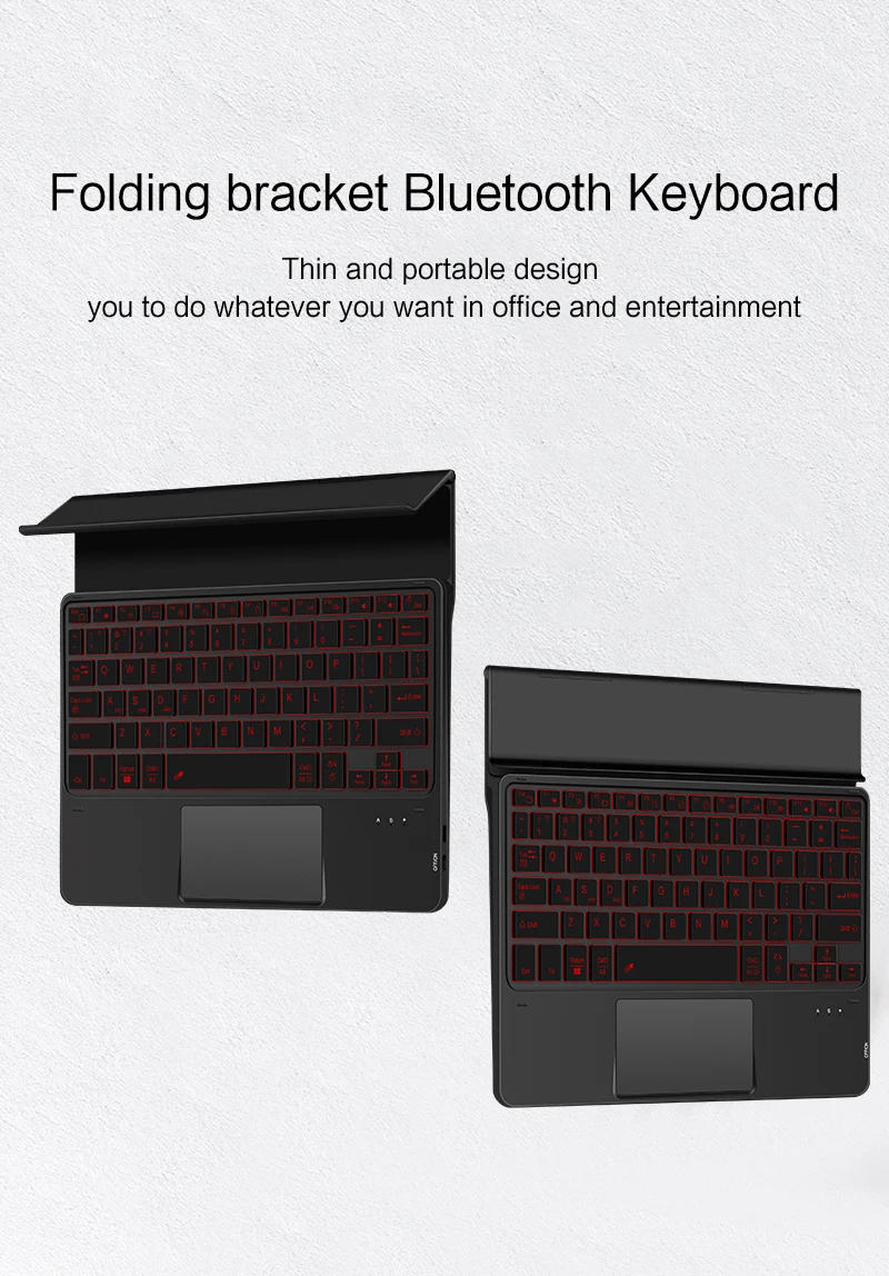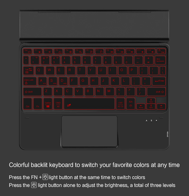 This is a touch pad keyboard with Bluetooth connection and colorful backlight