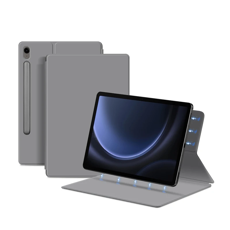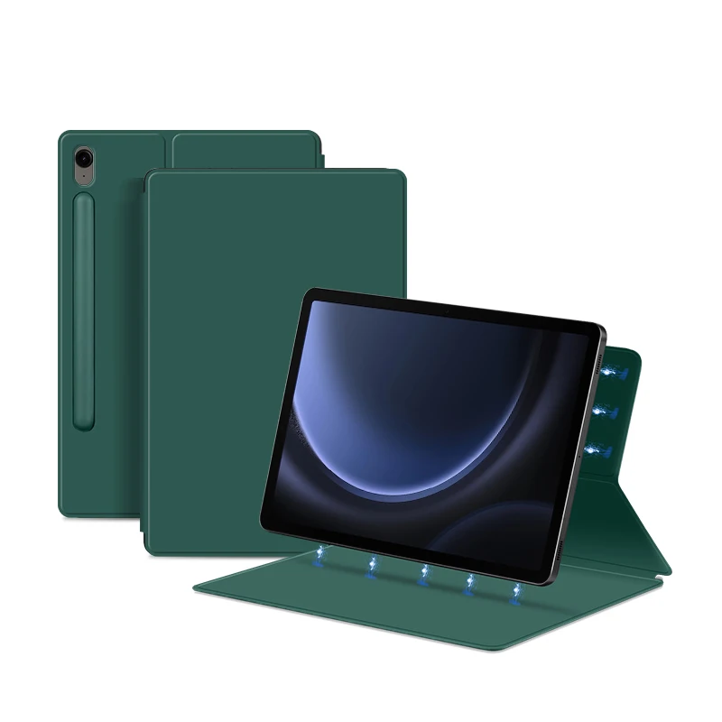 Esta es una funda protectora magnética con función inteligente de dormir y despertar, que es muy ligera y anticaída. Es compatible con su tableta, lo que facilita la visualización de vídeos y el entretenimiento. También facilita las necesidades de su oficina y apoya el ángulo. El producto tiene una ranura de almacenamiento para Stylus Pen en la parte posterior para proteger su Stylus de escritura a mano de pérdidas y daños.
