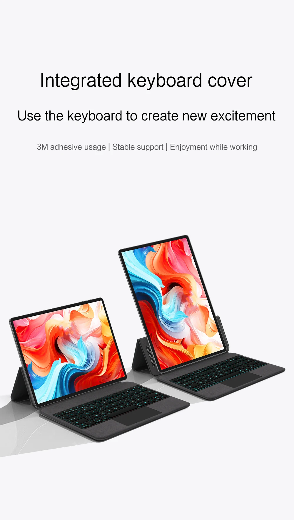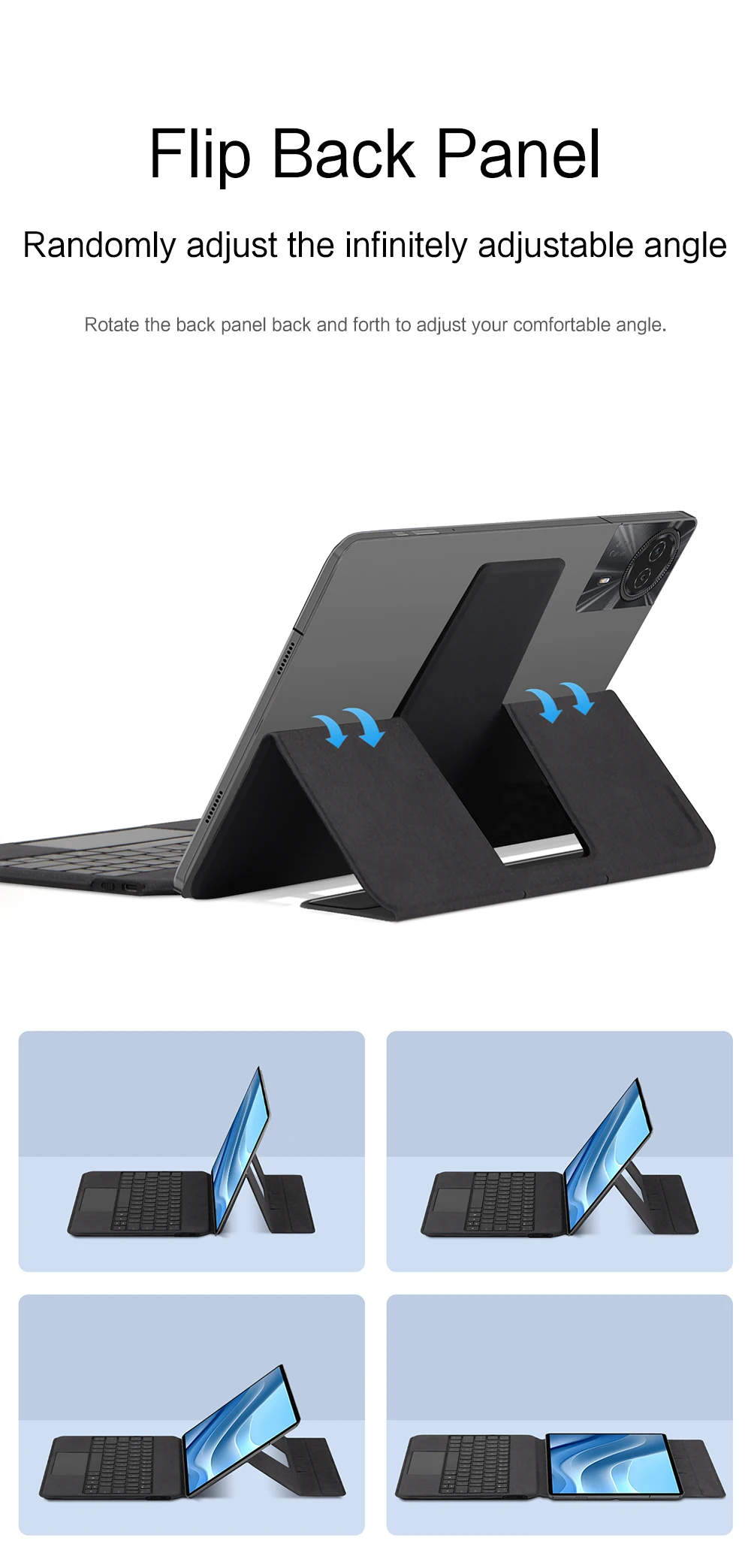 Este es un teclado universal "todo en uno" multifuncional de 11 pulgadas.El iPad puede soportar tanto horizontal como verticalmente, y la parte posterior del teclado está equipada con un soporte que se puede ajustar para satisfacer sus diferentes necesidades diarias.El adhesivo 3M en la cubierta del teclado se puede reutilizar y puede optar por usarlo o no ~~