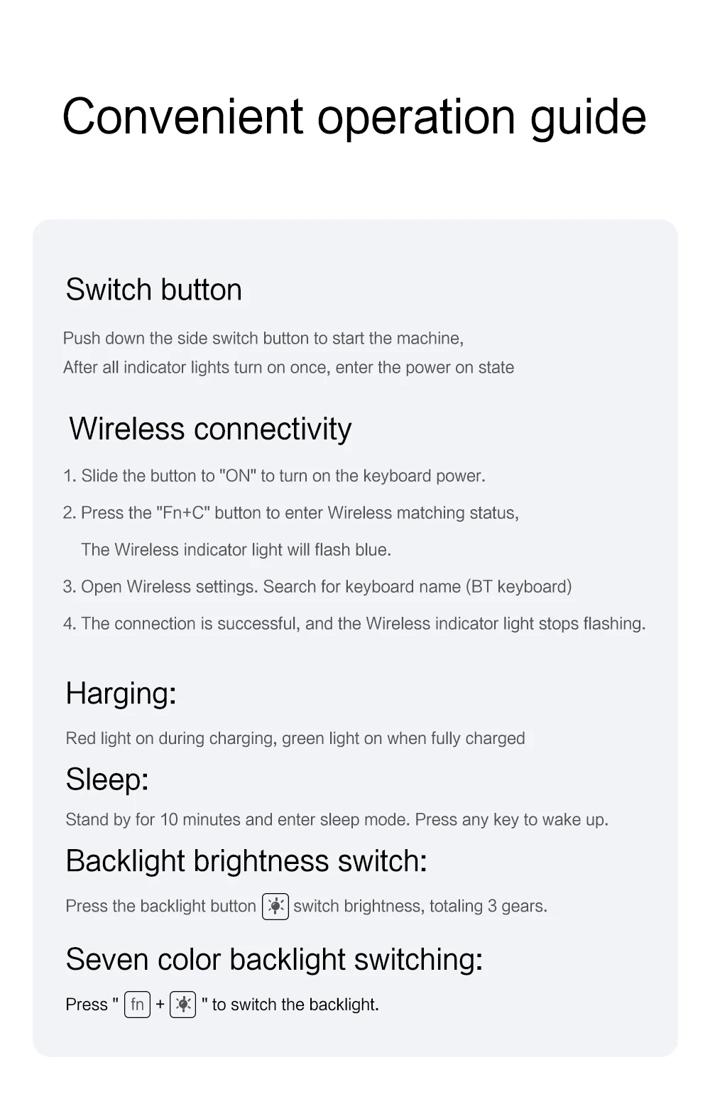 Versión en varios idiomasTeclado: letras en inglés y letras de idioma talladas juntas.(Debido al material del teclado, los caracteres grabados son de color gris oscuro)(Debido a la diferencia en la cantidad de teclas del teclado en comparación con un teclado de oficina normal, algunas posiciones especiales de grabado de caracteres son las mismas, lo cual es un fenómeno normal)