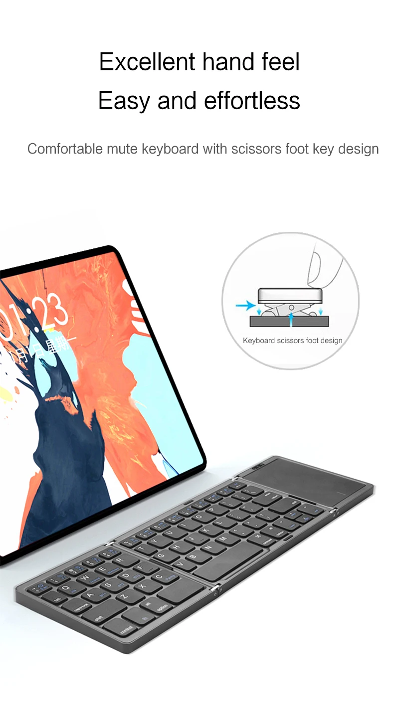 Este es un teclado plegable inalámbrico Bluetooth, pequeño y cómodo de llevar.Es adecuado para la tableta del teléfono móvil iPad Huawei Samsung Lenovo Xiaomi OPPOvivo