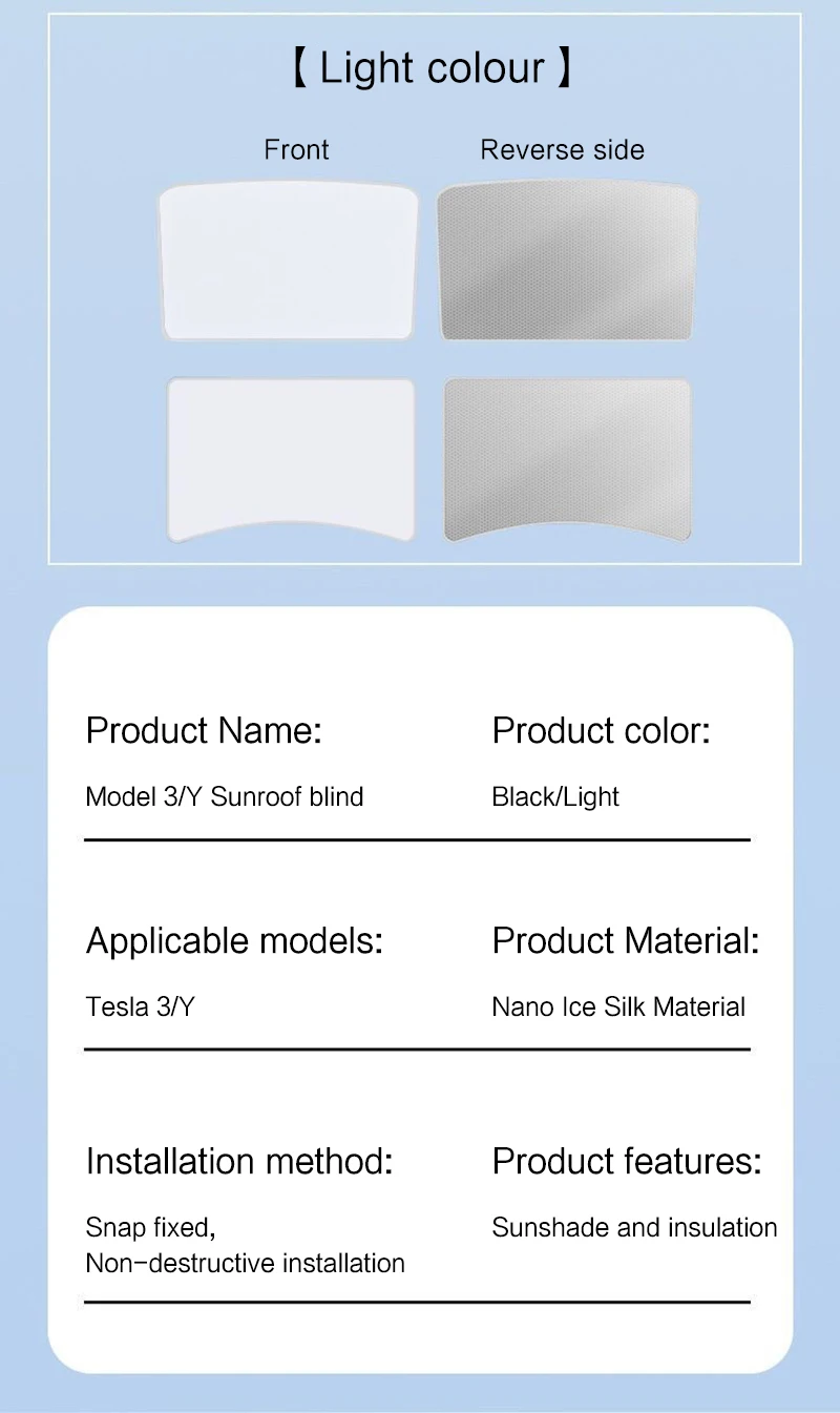 Este es un parasol de techo solar de coche adecuado para el modelo Y y el modelo 3.