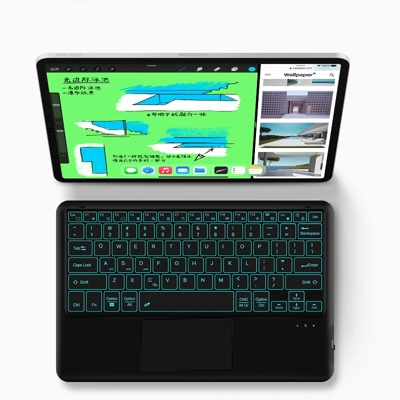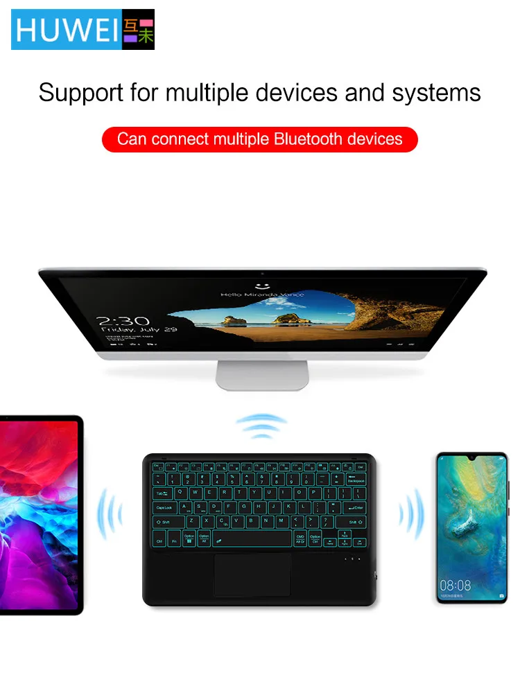 Comprar HUWEI-teclado inalámbrico con retroiluminación para iPad, dispositivo con Bluetooth para Samsung, Huawei, iPad Surface, Lenovo, 12,3-12,9 pulgadas