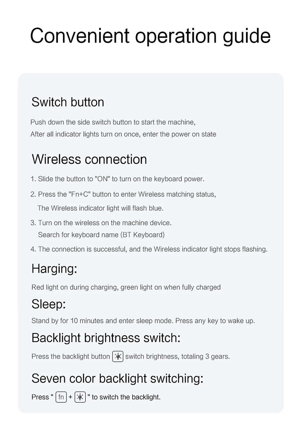 Nota 2:Después de abrir la alimentación, haga clic en "Fn" y "C" 【Fn + C】Botón juntos para abrir el Bluetooth del teclado. Es muy importante.