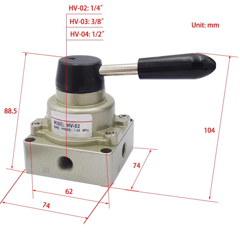 HV-02 HV-03 HV-04 HV200-02 HV300-03 HV400-04 Válvula rotativa de control manual neumática de 3 posiciones y 4 vías Interruptor de aire manual