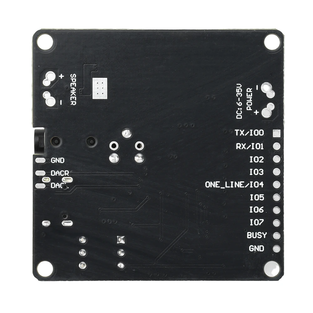 Este módulo de reproducción de voz inteligente integra 7 modos de trabajo, incluido disparador segmentado IO, control de puerto serie UART, control de puerto serie de bus único ONEnline, MP3 estándar y configuraciones de interruptor DIP simple;Amplificador Clase D de 20W integrado;Admite formatos de decodificación MP3, WAV, almacenamiento flash integrado de 64 Mbit (8 M bytes), se puede conectar a una computadora mediante un cable USB para actualizar archivos de audio almacenados en Flash.